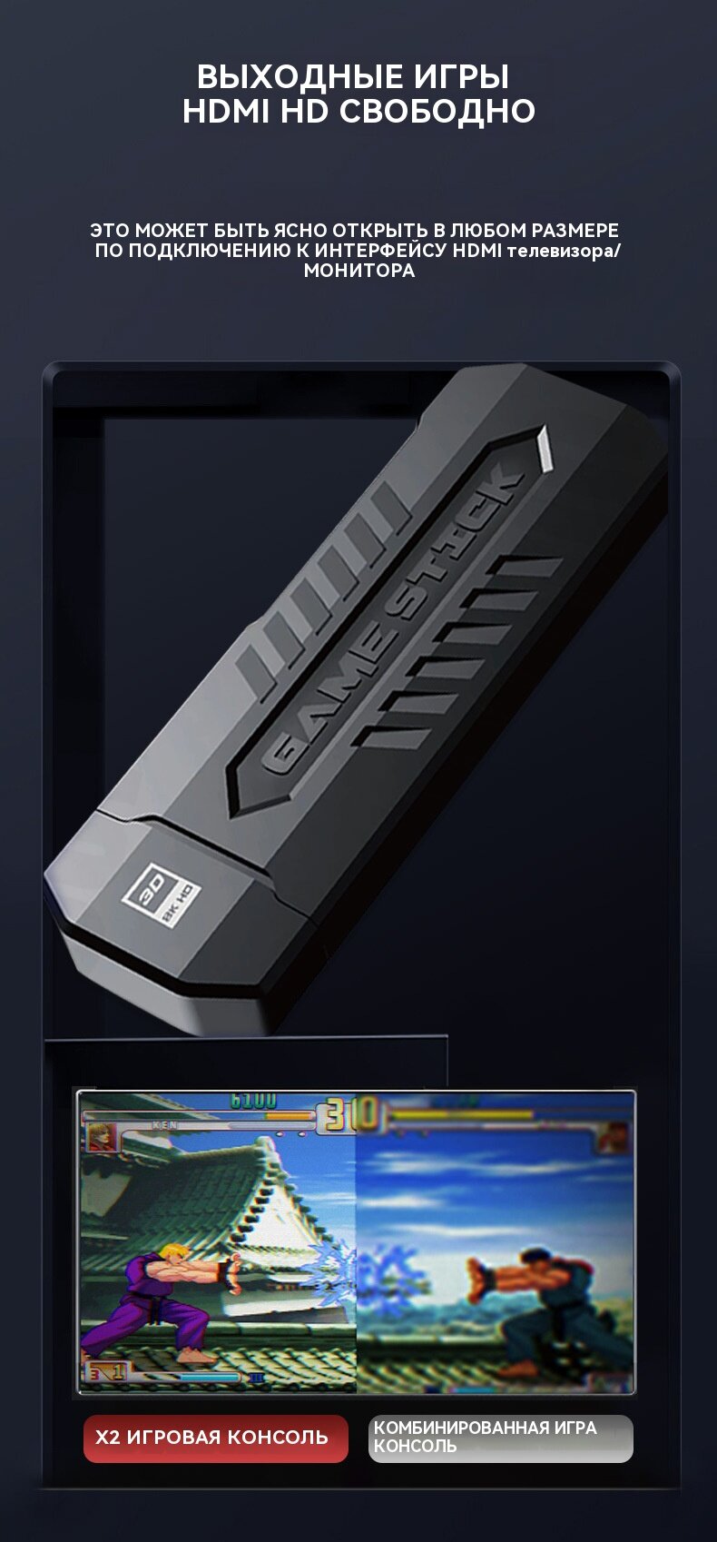 Игровая приставка, консоль Game Stick Lite 64Gb, 3555 игр, 4K, 2,4 ГГц, 8 бит, 16 бит, 32 бит