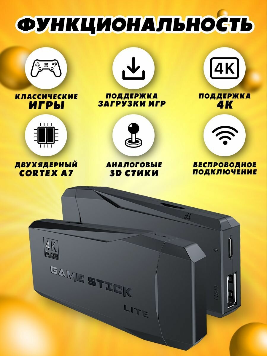 Игровая приставка, консоль Game Stick Lite 64Gb, 3555 игр, 4K, 2,4 ГГц, 8 бит, 16 бит, 32 бит