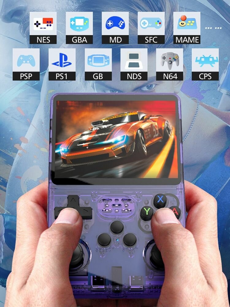 Портативная игровая консоль R36S, ретро-аркада, 3,5 дюйма, фиолетовый, 64G
