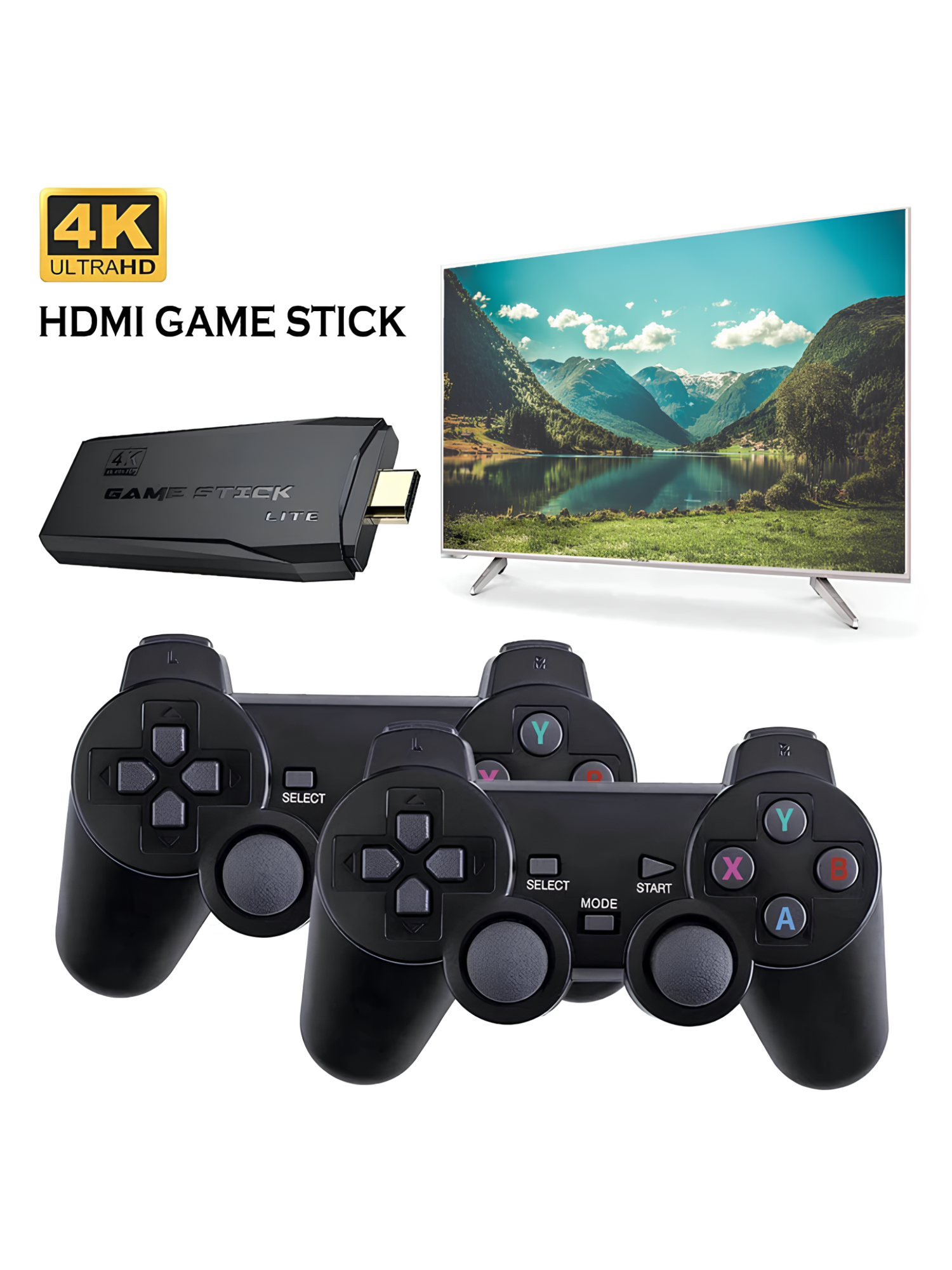 Игровая приставка, консоль Game Stick Lite 64Gb, 3555 игр, 4K, 2,4 ГГц, 8 бит, 16 бит, 32 бит