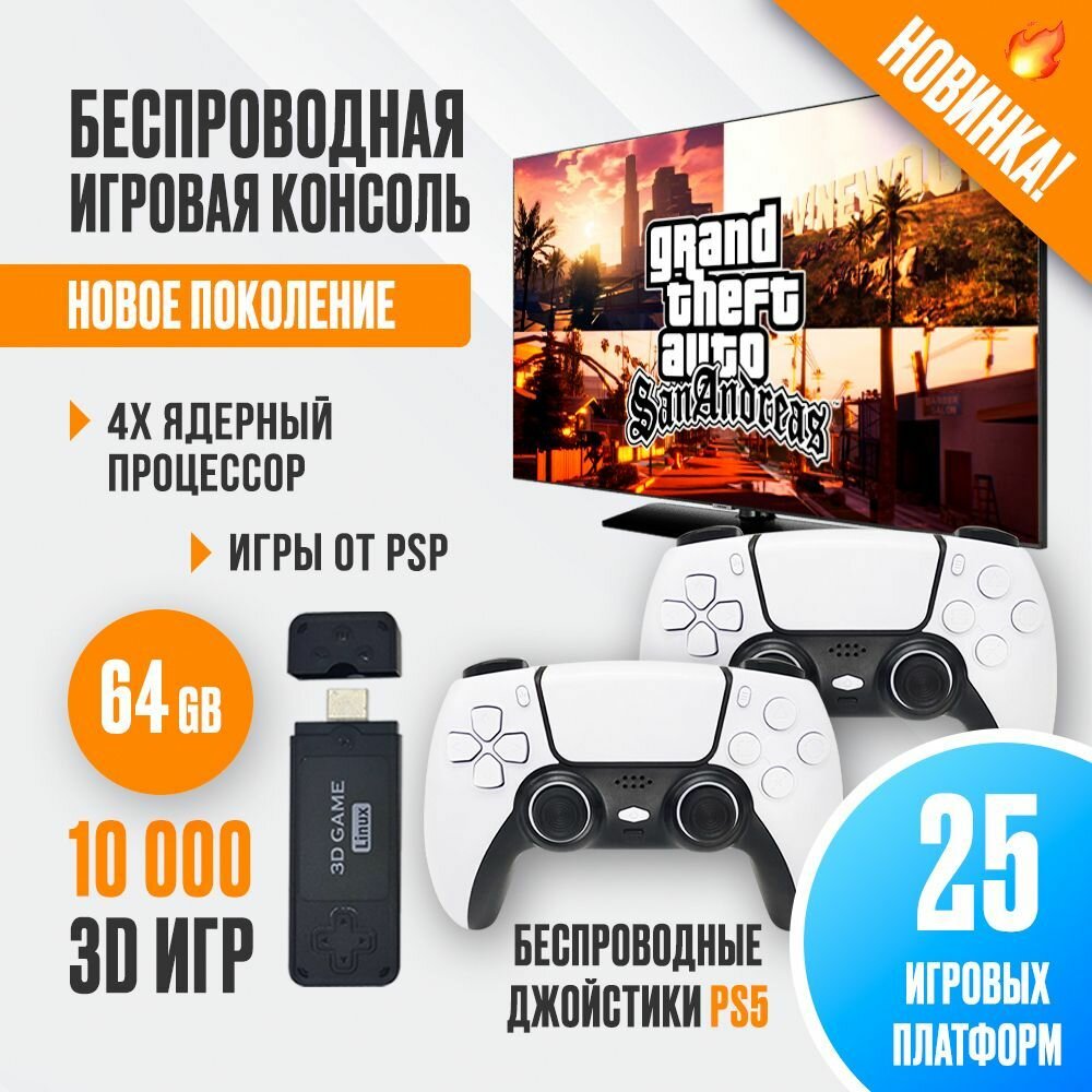 Игровая приставка, консоль Game Stick Lite 64Gb, 3555 игр, 4K, 2,4 ГГц, 8 бит, 16 бит, 32 бит