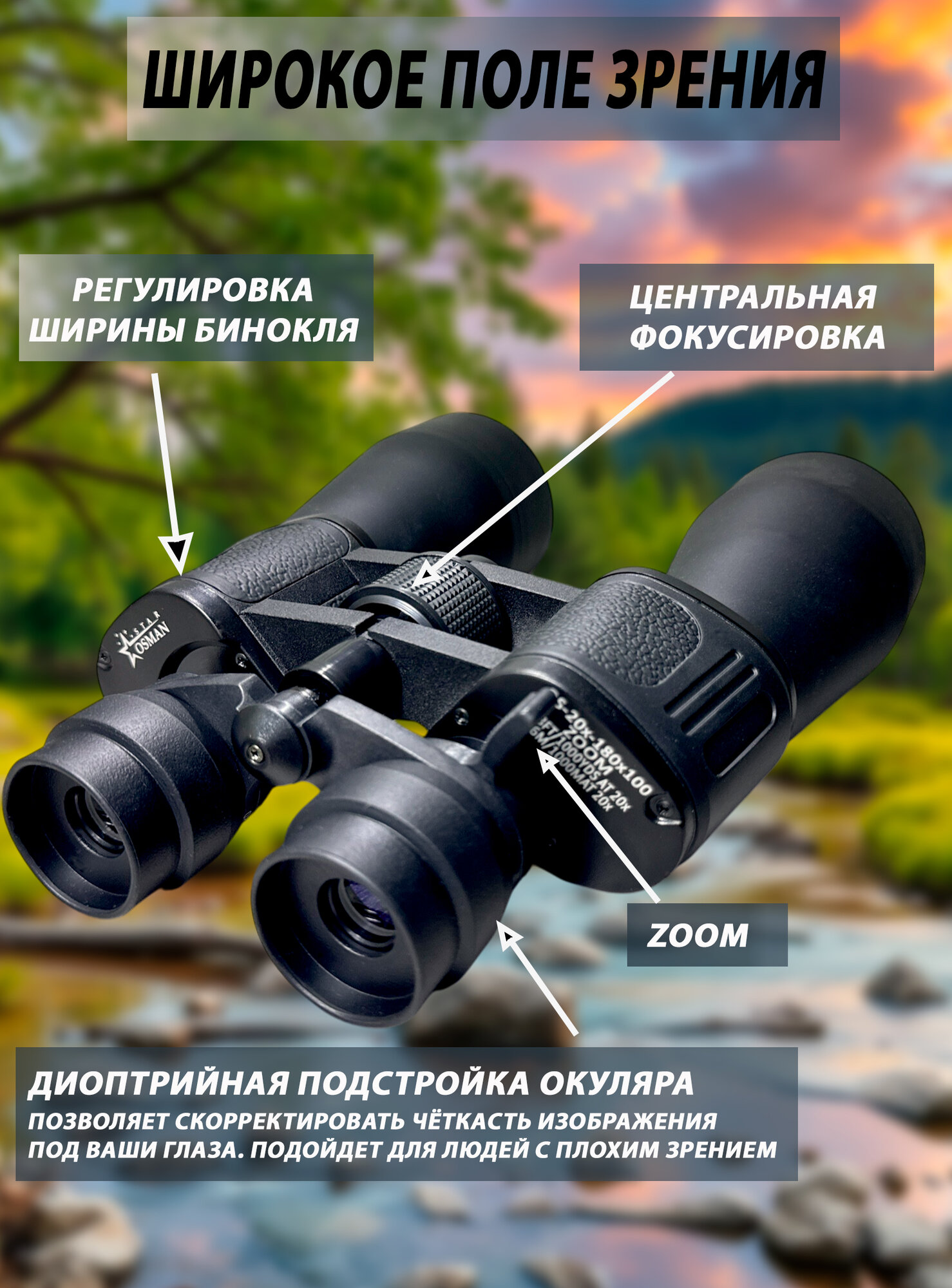 Бинокль туристический OS-20-180 x 100, с ZOOM, профессиональный интересное: