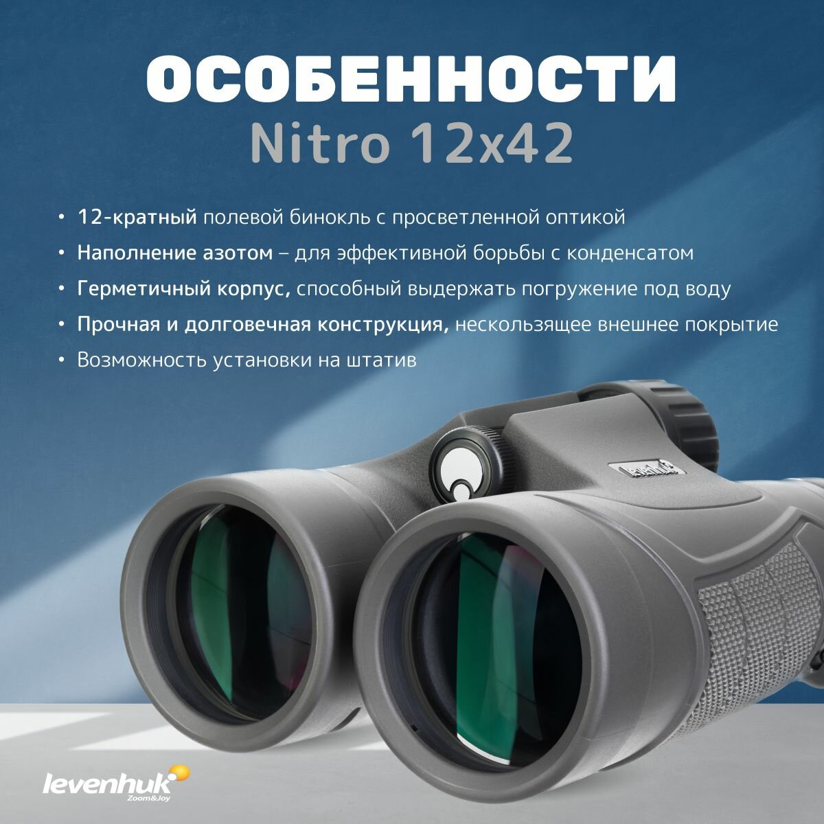 Levenhuk Nitro 12x42 Лёгкий, компактный бинокль для любой погоды интересное: