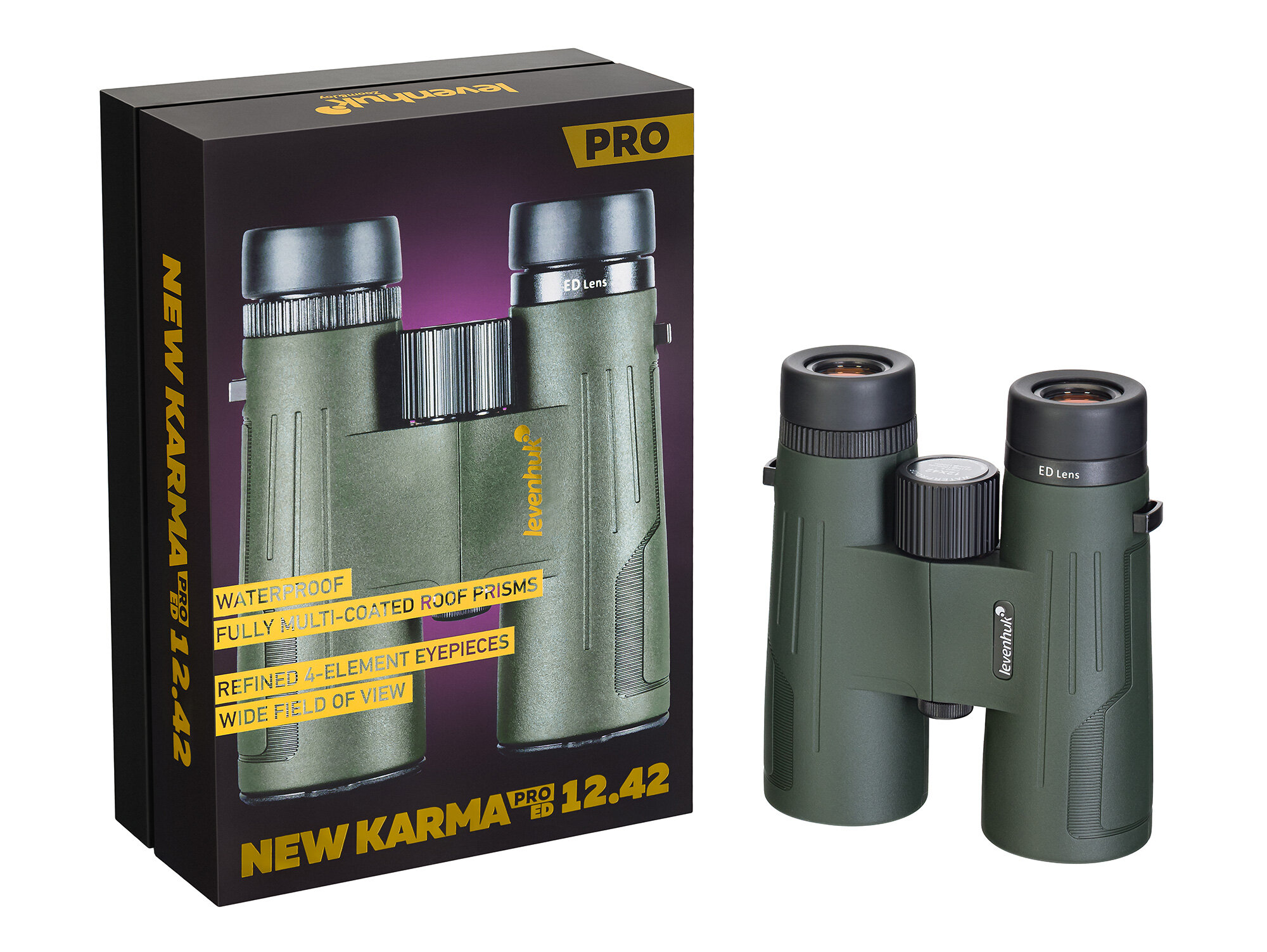 Купить Бинокль Levenhuk New Karma PRO ED 12x42, 12x, влагозащищенный, ED-линзы, PPS-корпус