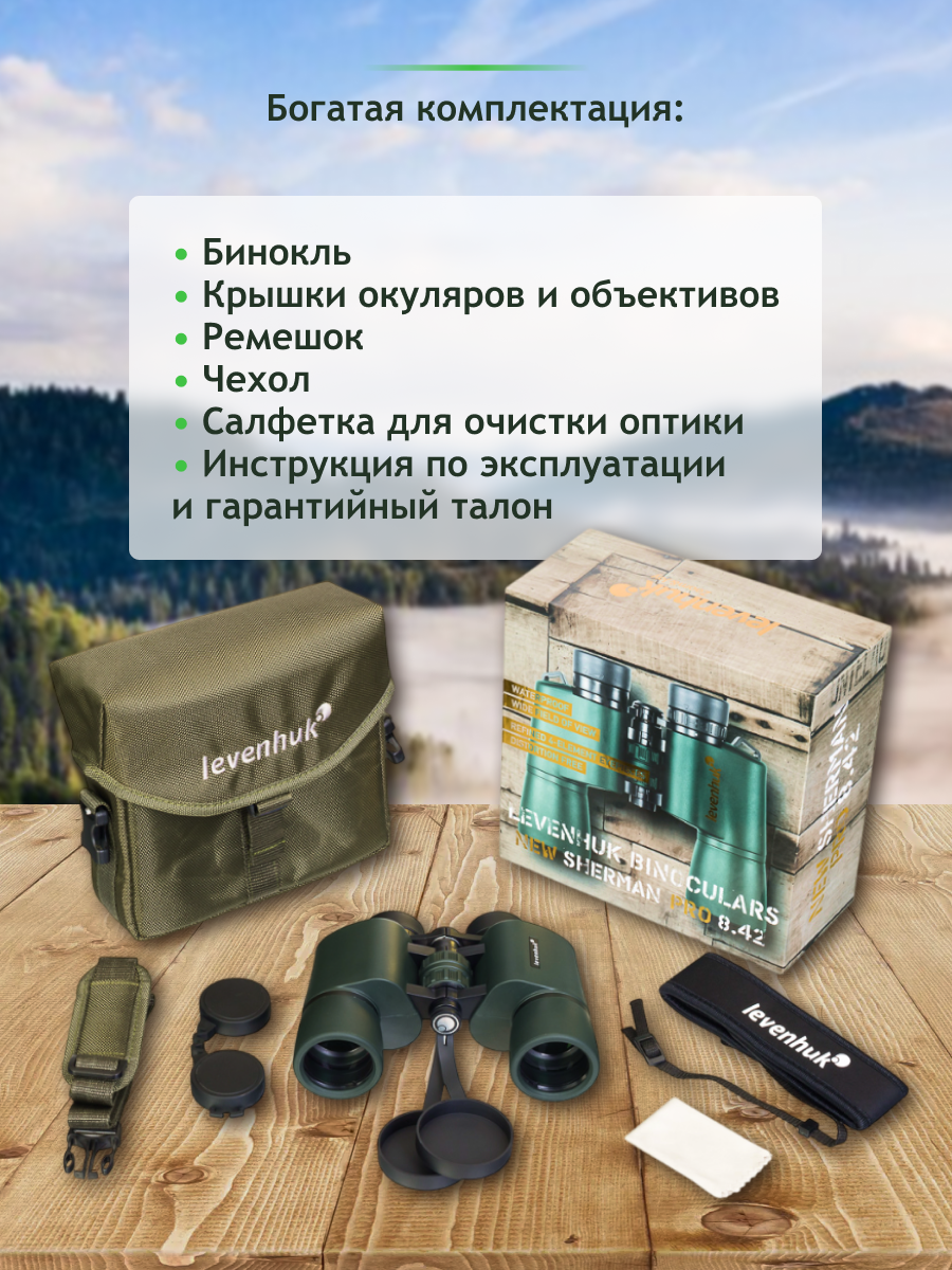 Levenhuk New Sherman PLUS 8x42 Бинокль мощный профессиональный