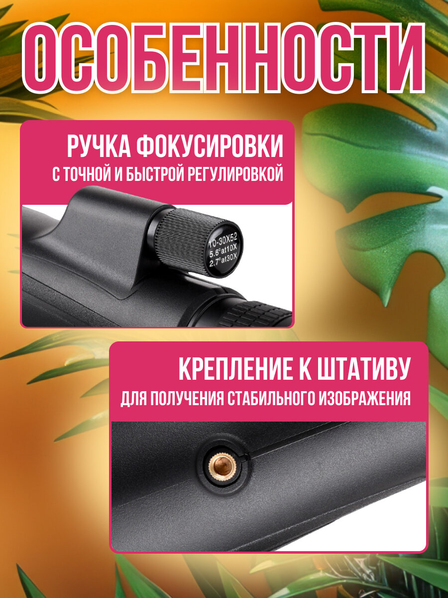 Монокуляр мощный с большой кратностью и зумом 30x с креплением для телефона и штативом интересное: