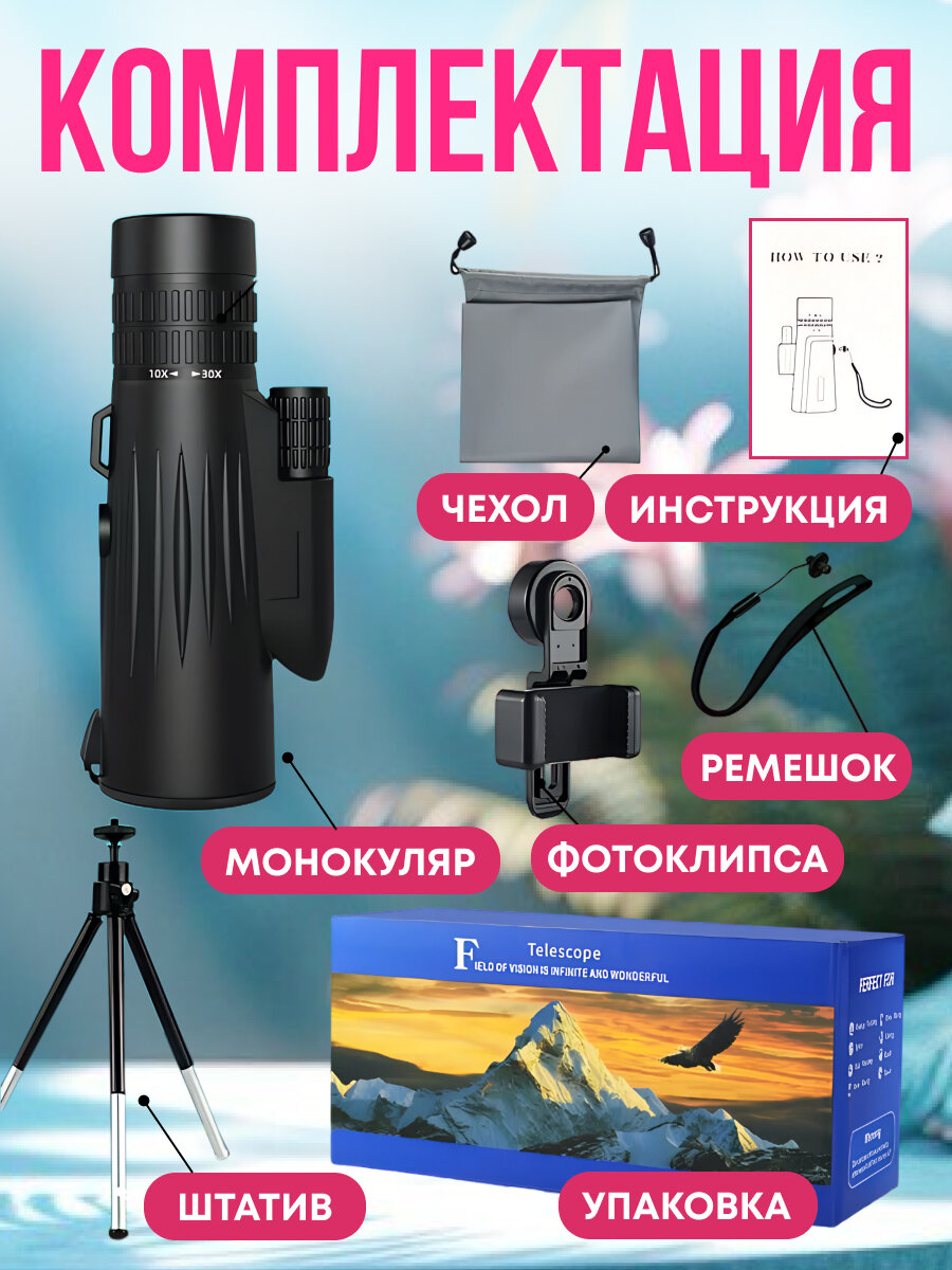 Монокуляр мощный профессиональный с креплением для смартфона HD x30 zoom с штативом интересное: