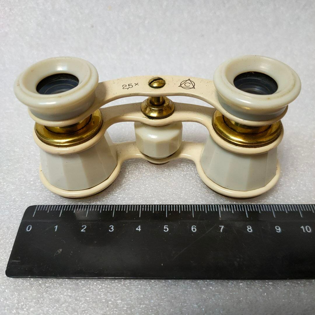 Бинокль театральный времен СССР, 2,5х, белый, винтаж, в кожаном чехле интересное: