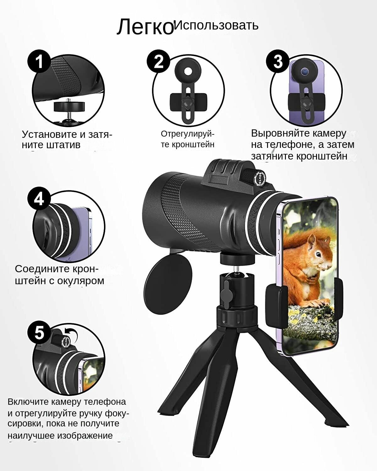 Монокуляр 80x100 для взрослых, мощный и легкий штатив с адаптером для смартфона для охоты, наблюдения за птицами, походов, путешествий интересное: