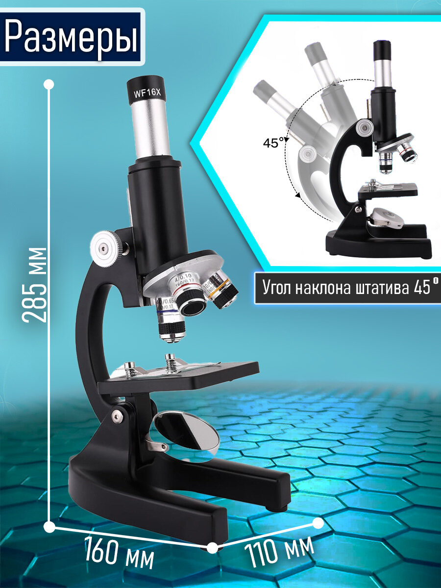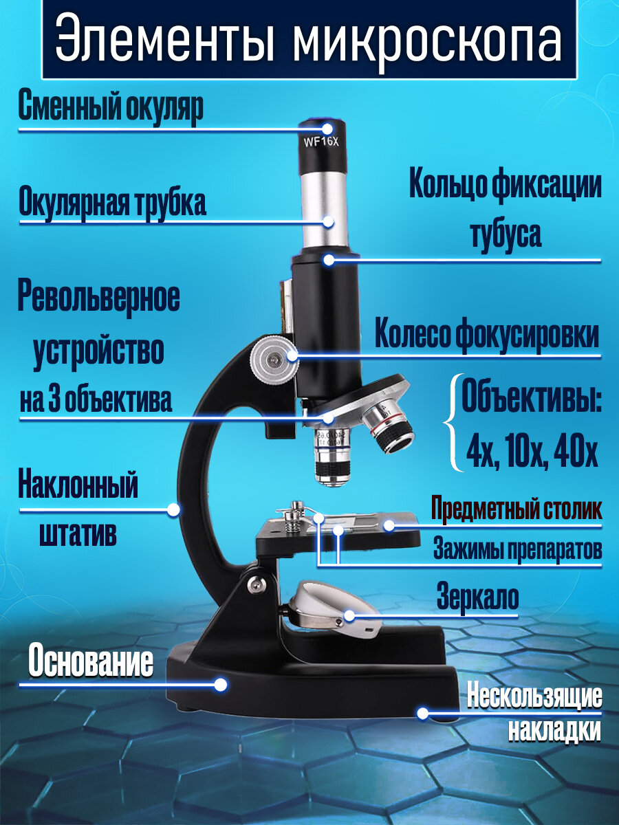 Учебный школьный биологический микроскоп DigiMicro Erudit С-13 Plus Black с препаратами в кейсе интересное: