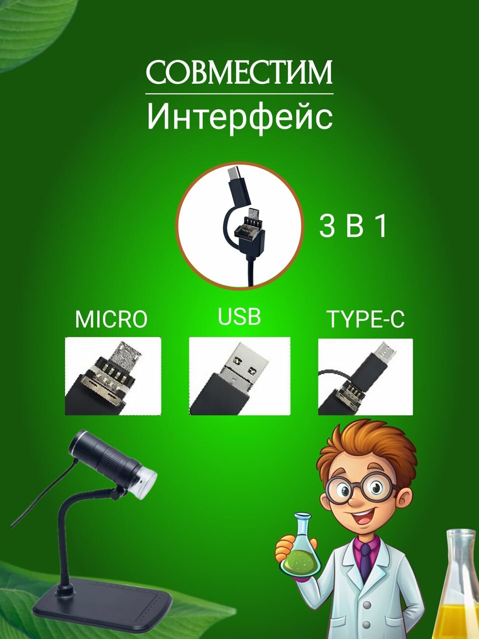 Цифровой портативный микроскоп 1000X HD 1080P для мобильных телефонов и компьютера интересное: