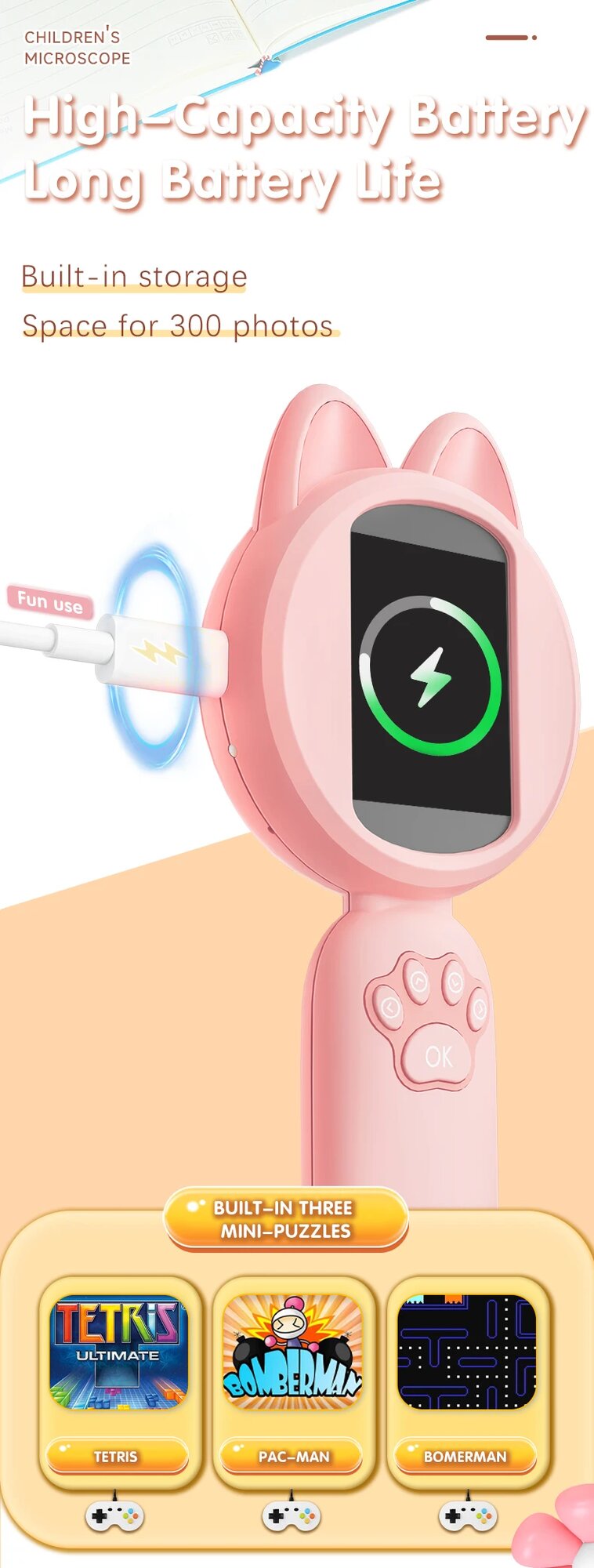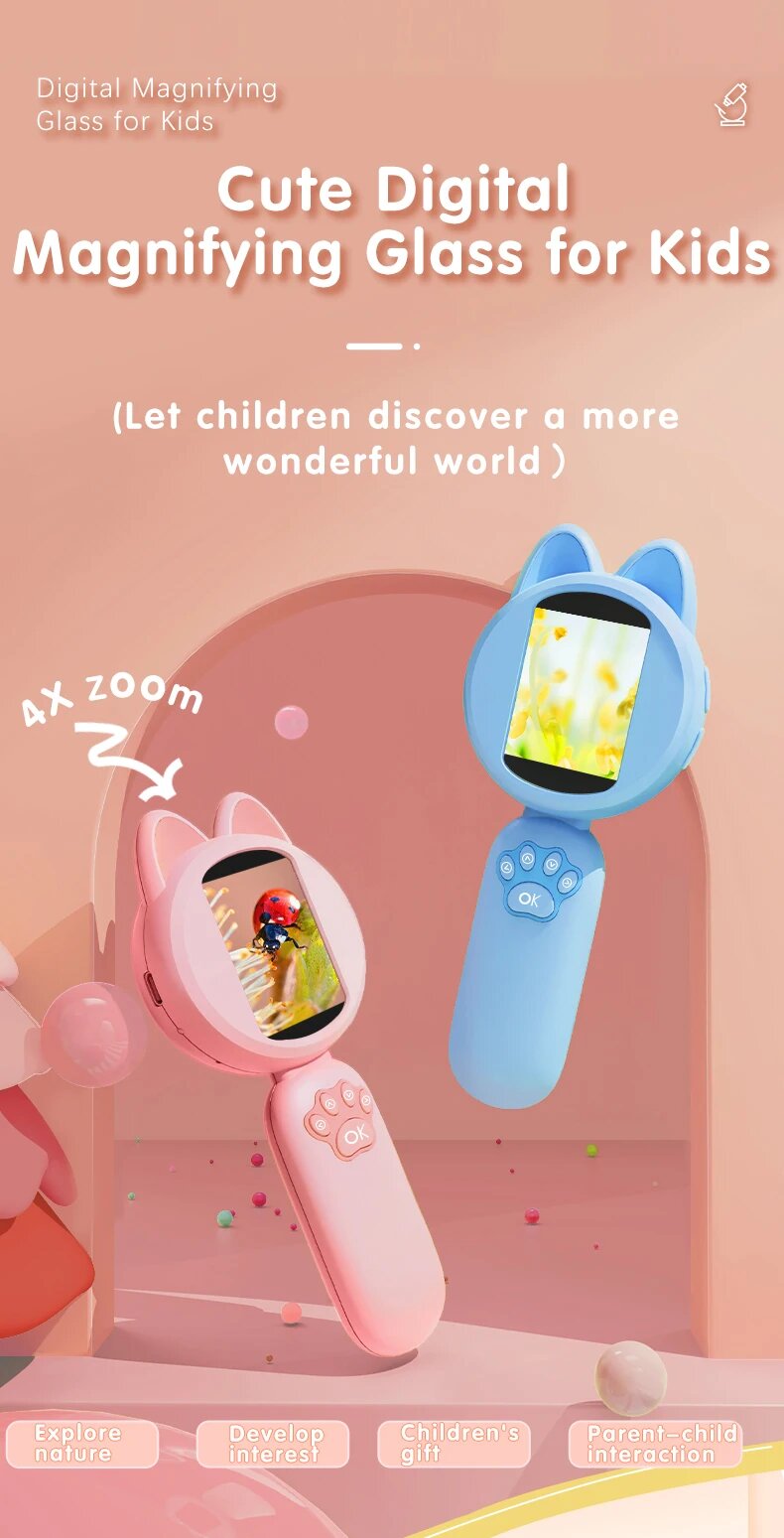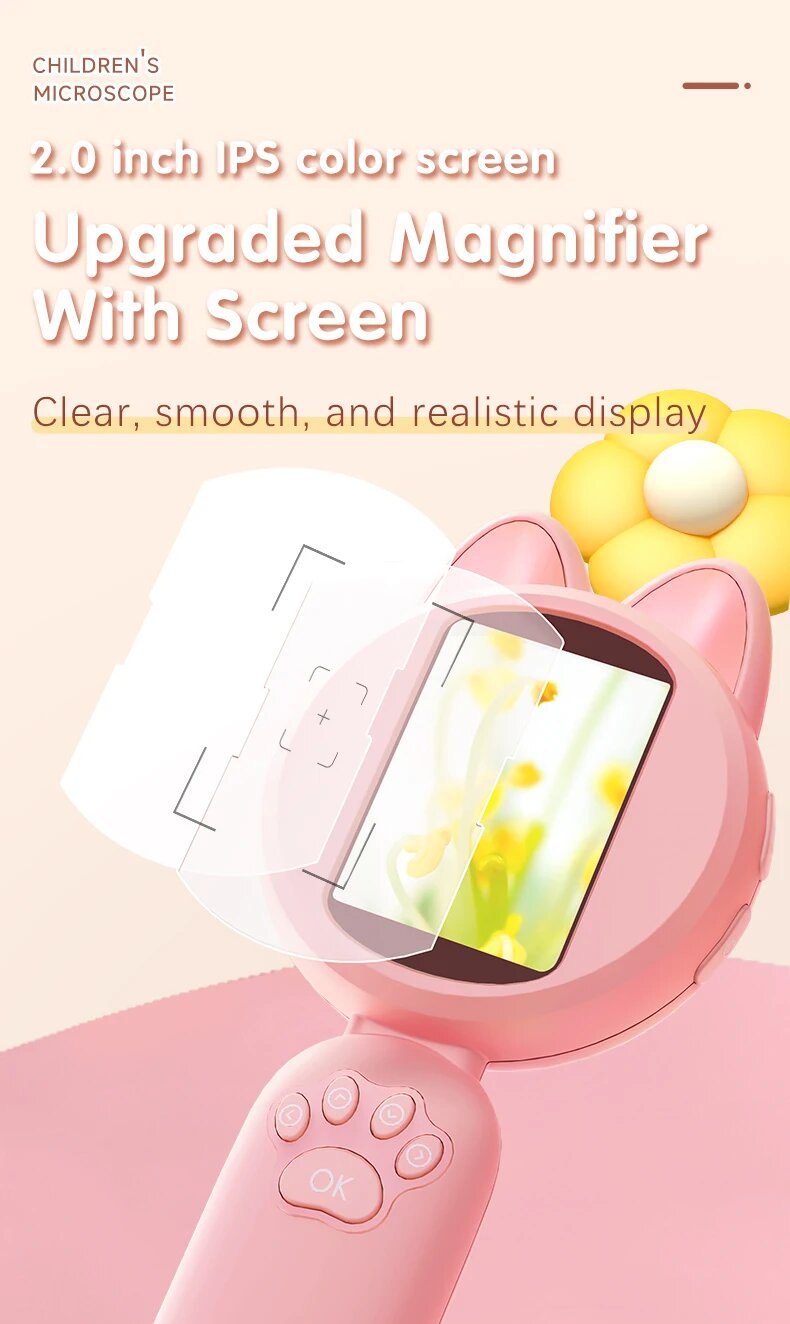GUANMOU Мини-микроскоп 500X для детей, PINK, 100X интересное: