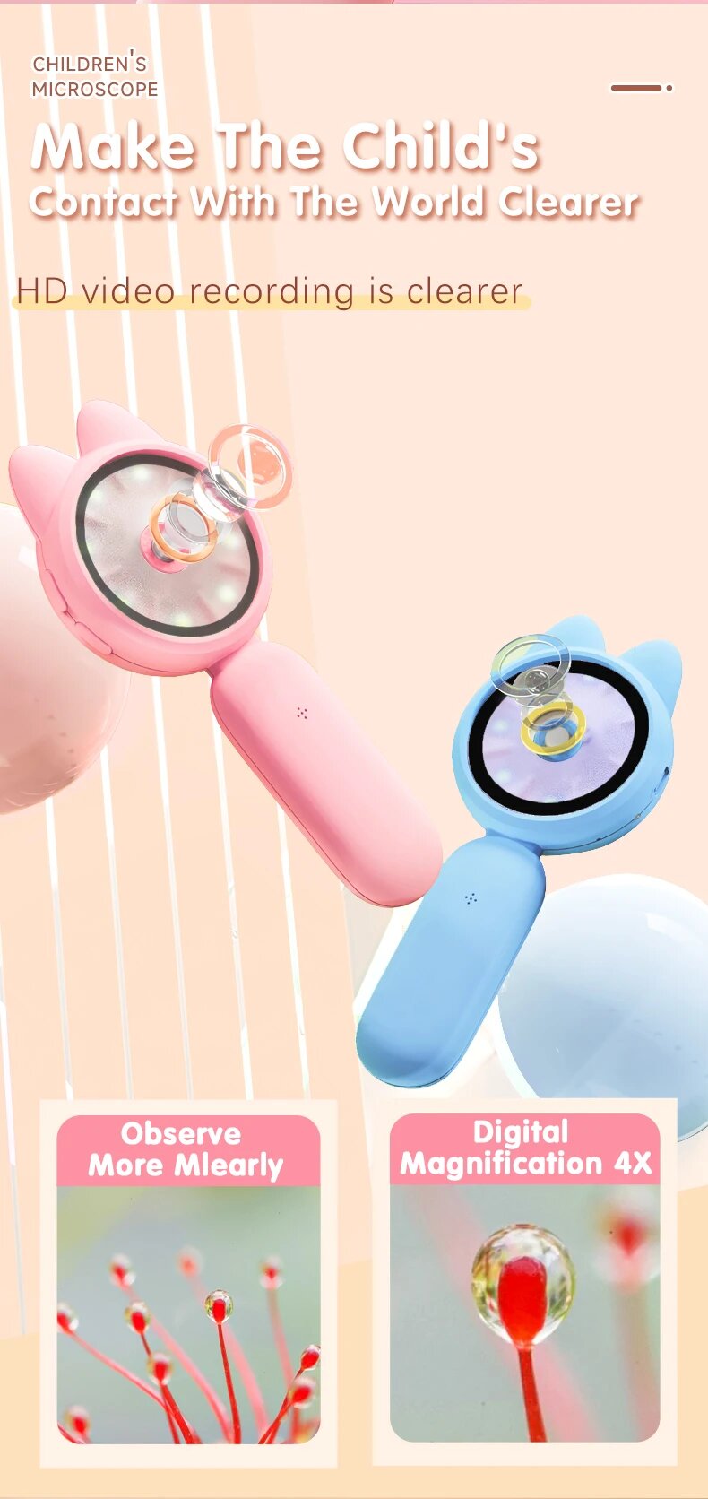 Купить GUANMOU Мини-микроскоп 500X для детей, PINK, 100X