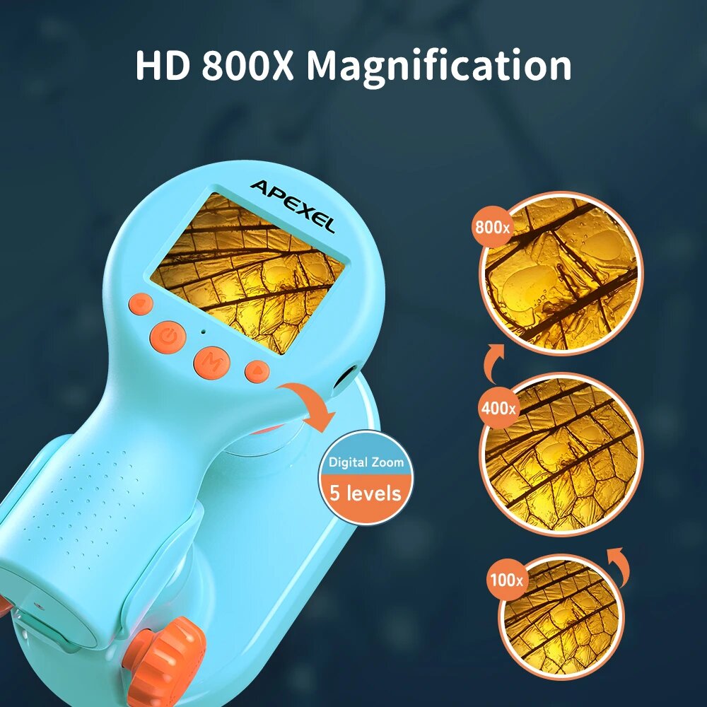 APEXEL Цифровой микроскоп 800X для детей, Digital microscope интересное: