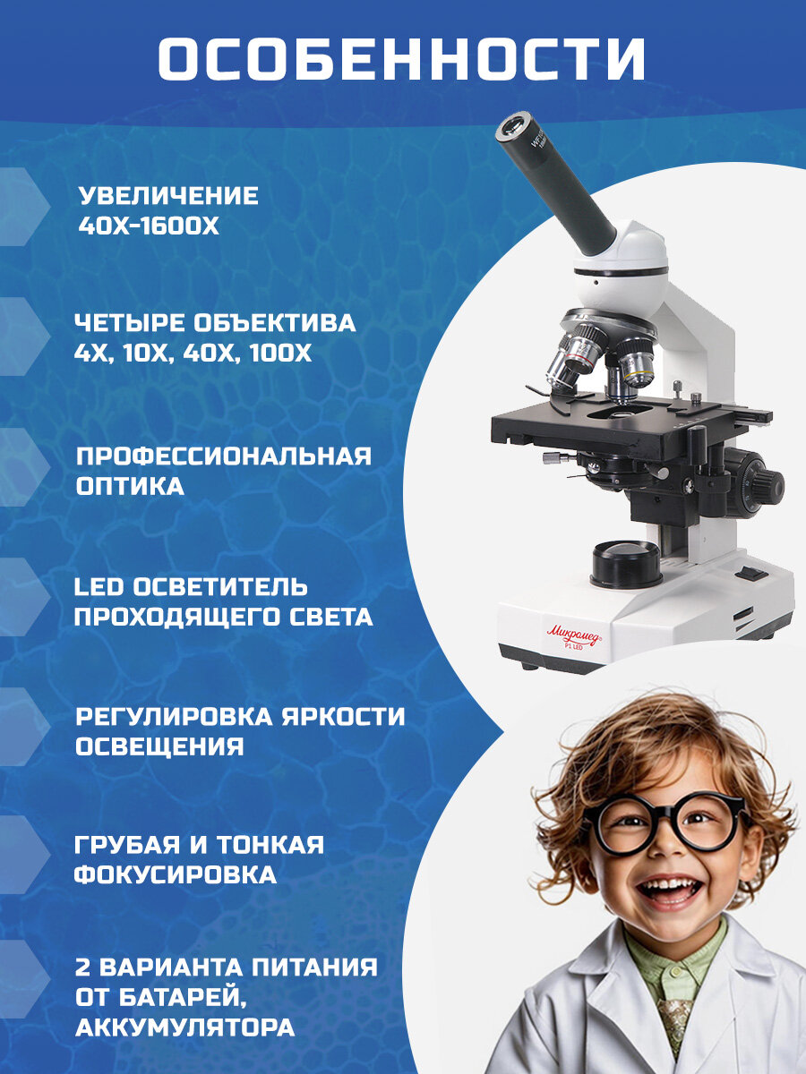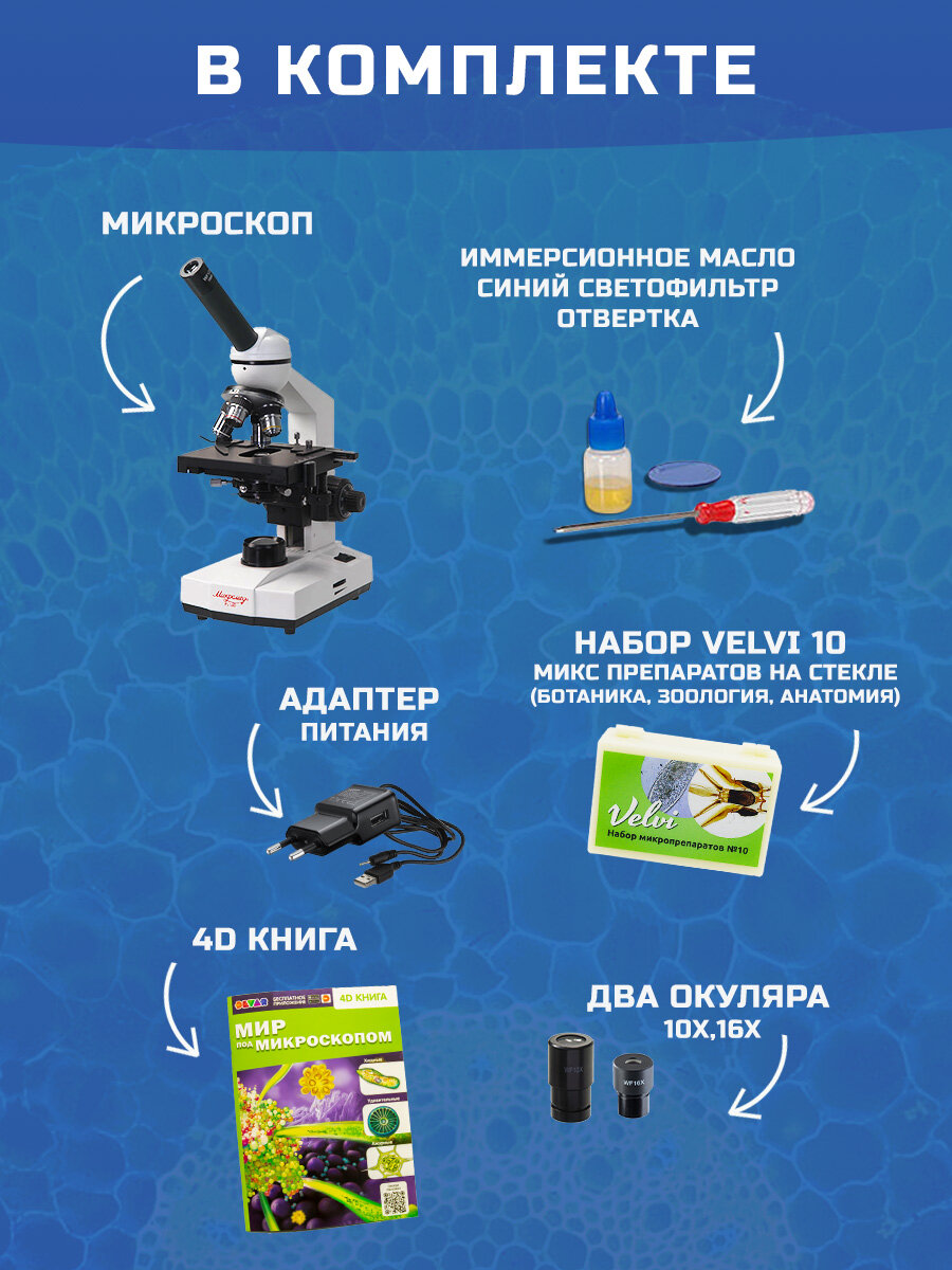 Микроскоп Микромед "Р-1 LED" 40х-1600х, в комплекте с препаратами Velvi №10 и 4D книгой интересное: