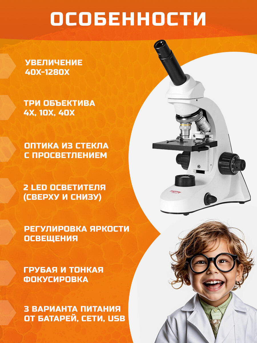 Микроскоп Микромед "C-11 (1B LED)" 40x-1280x, с набором предметных и покровных стекл интересное: