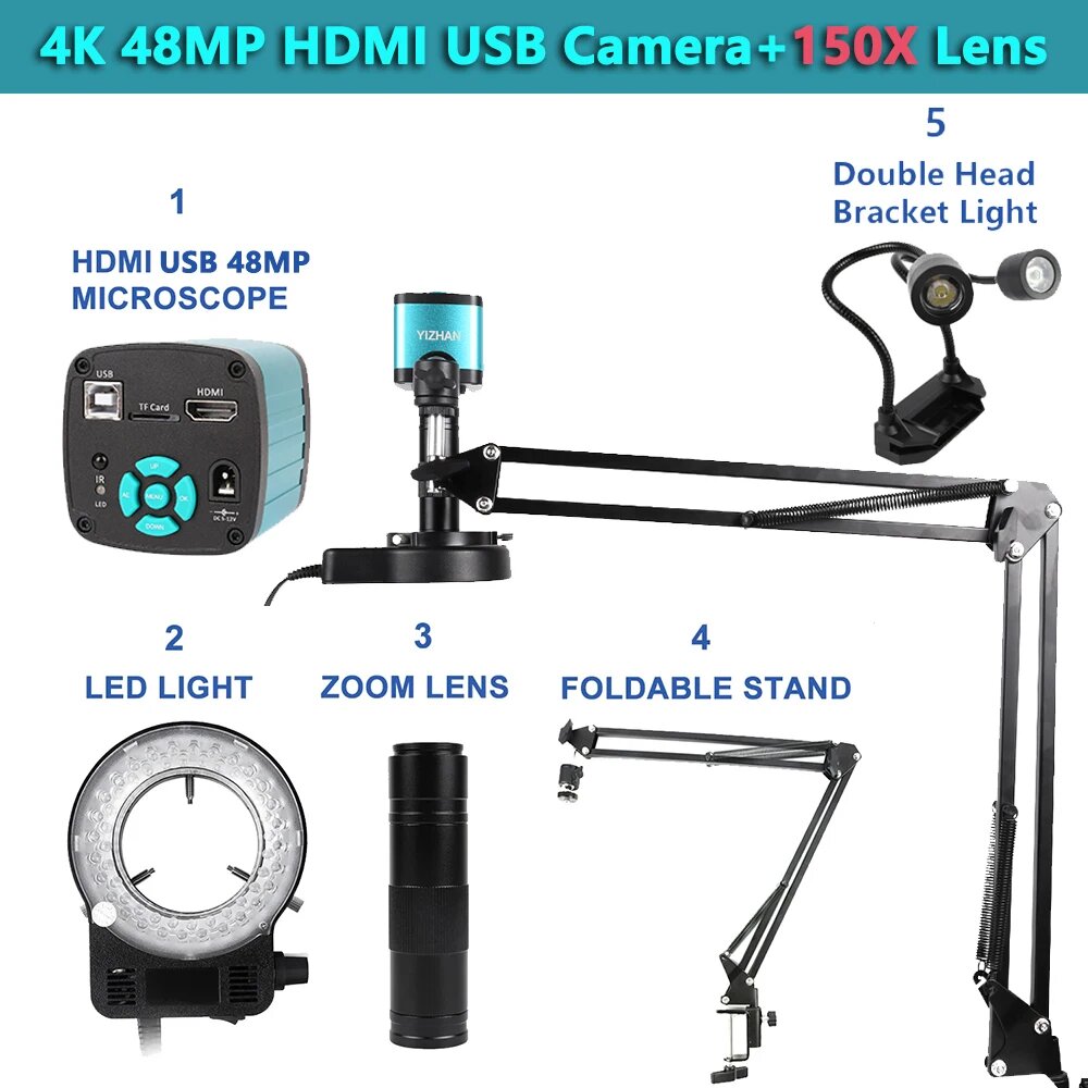 Промышленный видеомикроскоп KUAIQU 48МП HDMI 1X-150X zoom, D Set интересное: