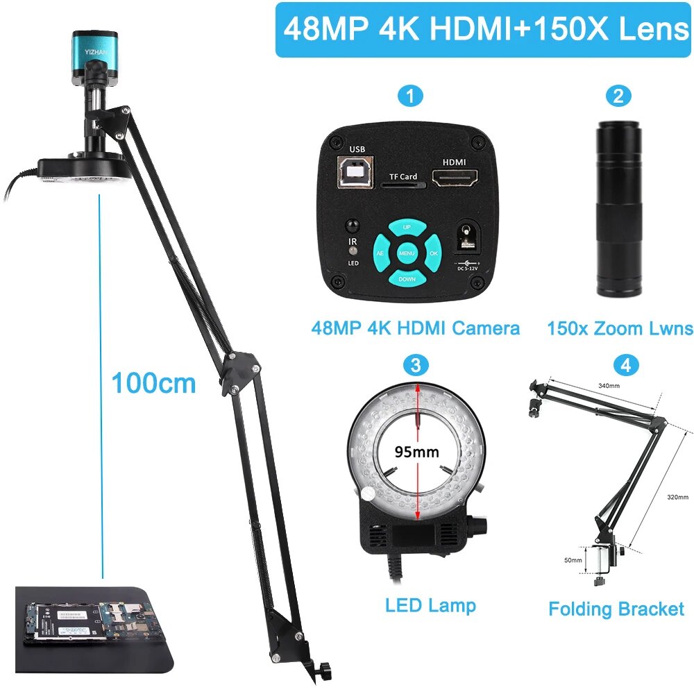 Промышленный видеомикроскоп KUAIQU 48МП HDMI 1X-150X zoom, A Set интересное: