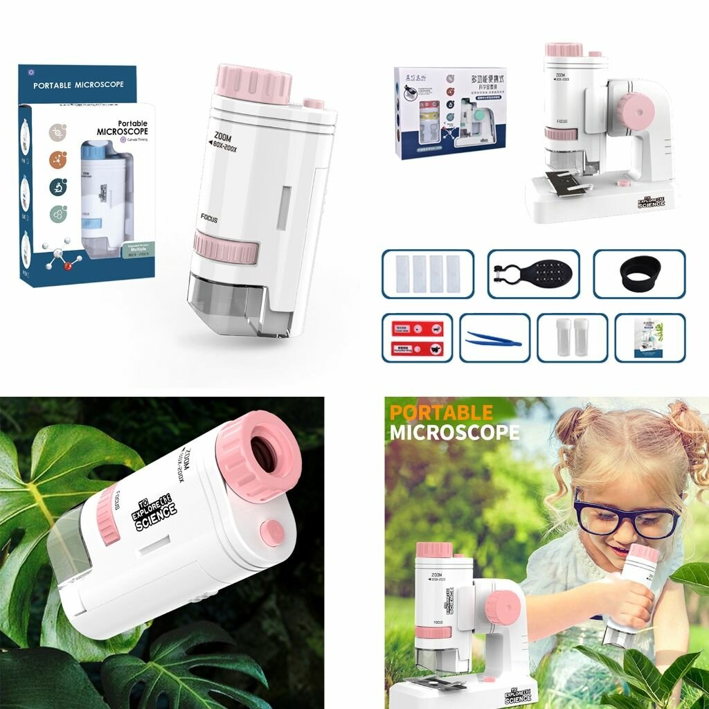 1 коробка детского портативного микроскопа-8609 синий интересное: