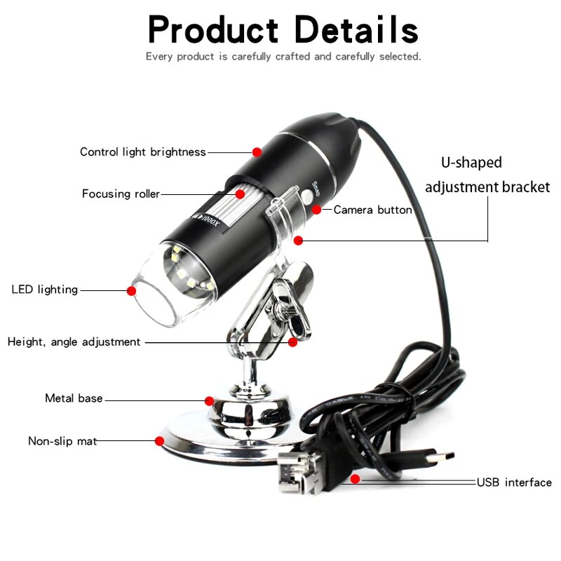 AUFOODUN Портативный цифровой микроскоп 500-1500x, USB 1600X интересное: