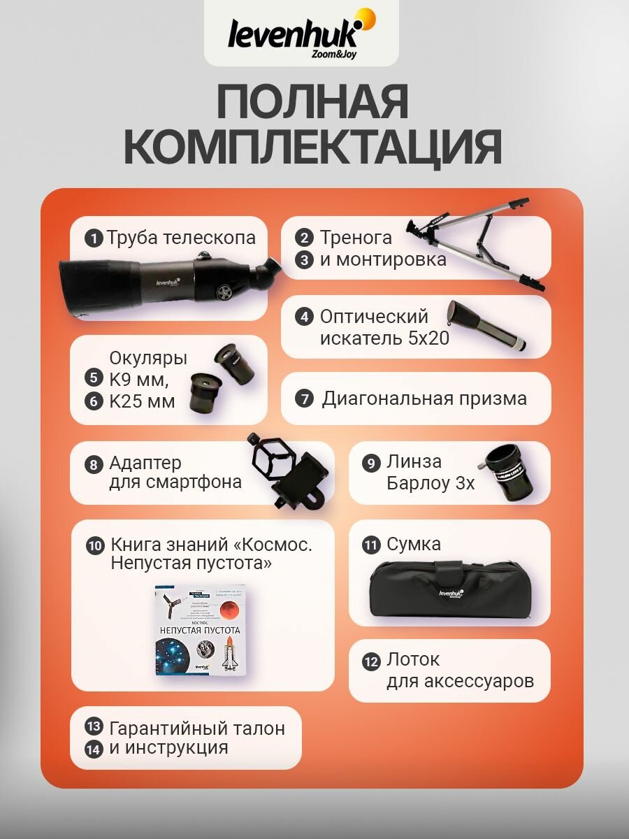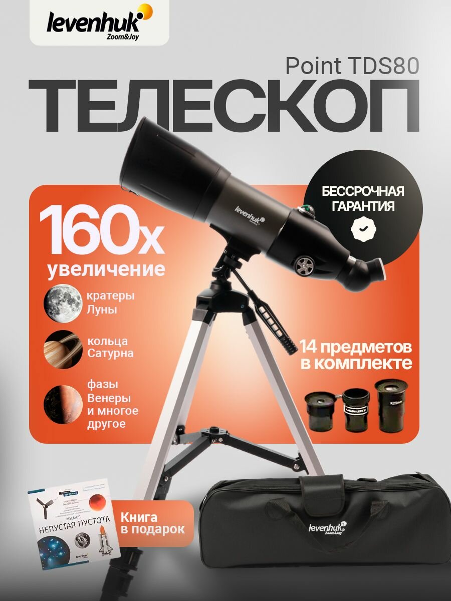 Телескоп Levenhuk Point TDS80 для начинающих астрономов с книгой и адаптером в подарок интересное: