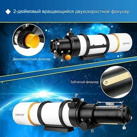 Астрономический телескоп-рефрактор SVBONY SV48P, универсальный, 1,25/2 дюйма, двухскоростная фокусировка 90/500 интересное: