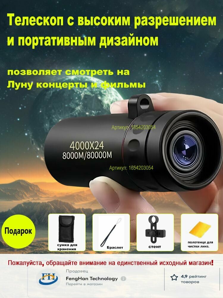 Купить Телескоп высокого разрешения 4000x24 с видом на природу и животных в ночное время съемки на мобильный телефон