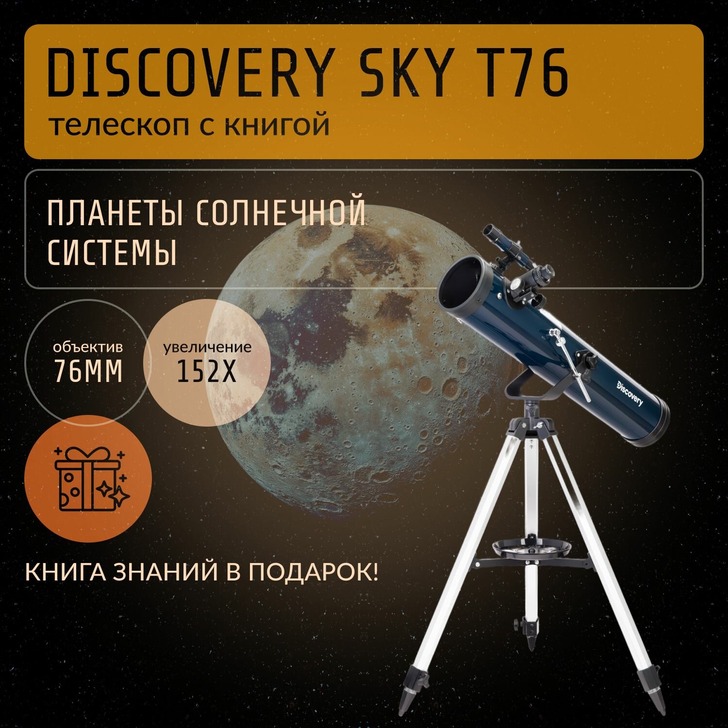 Купить Телескоп Levenhuk Discovery Sky T76 с книгой Космос. Непустая пустота