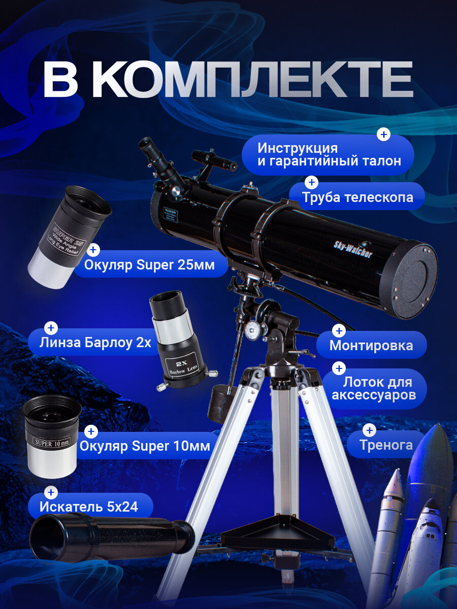 Телескоп на штативе Sky-Watcher BK 1309EQ2 диаметр 130 мм, фокусное расстояние 900 мм, макс. увеличение 260 крат интересное:
