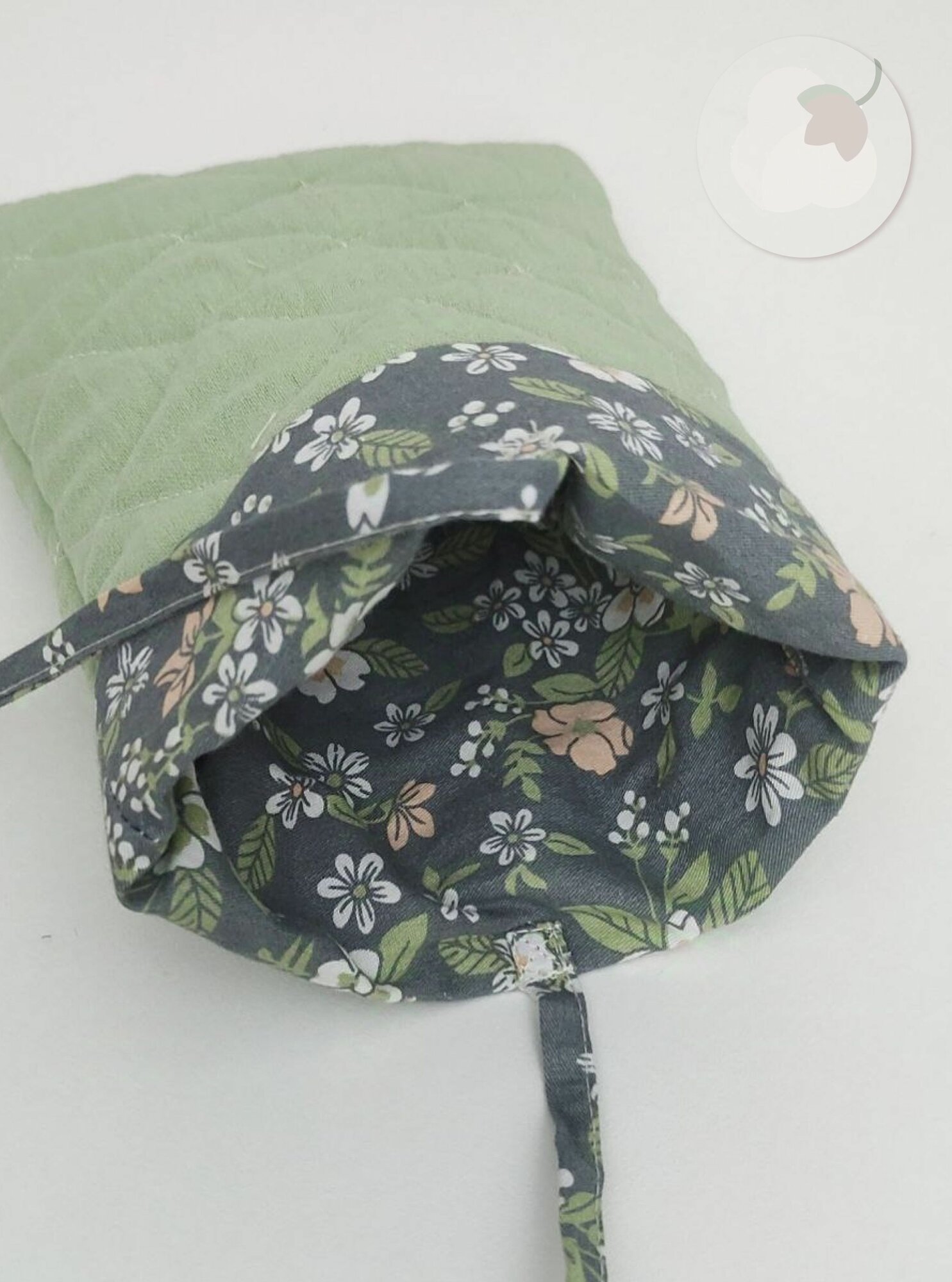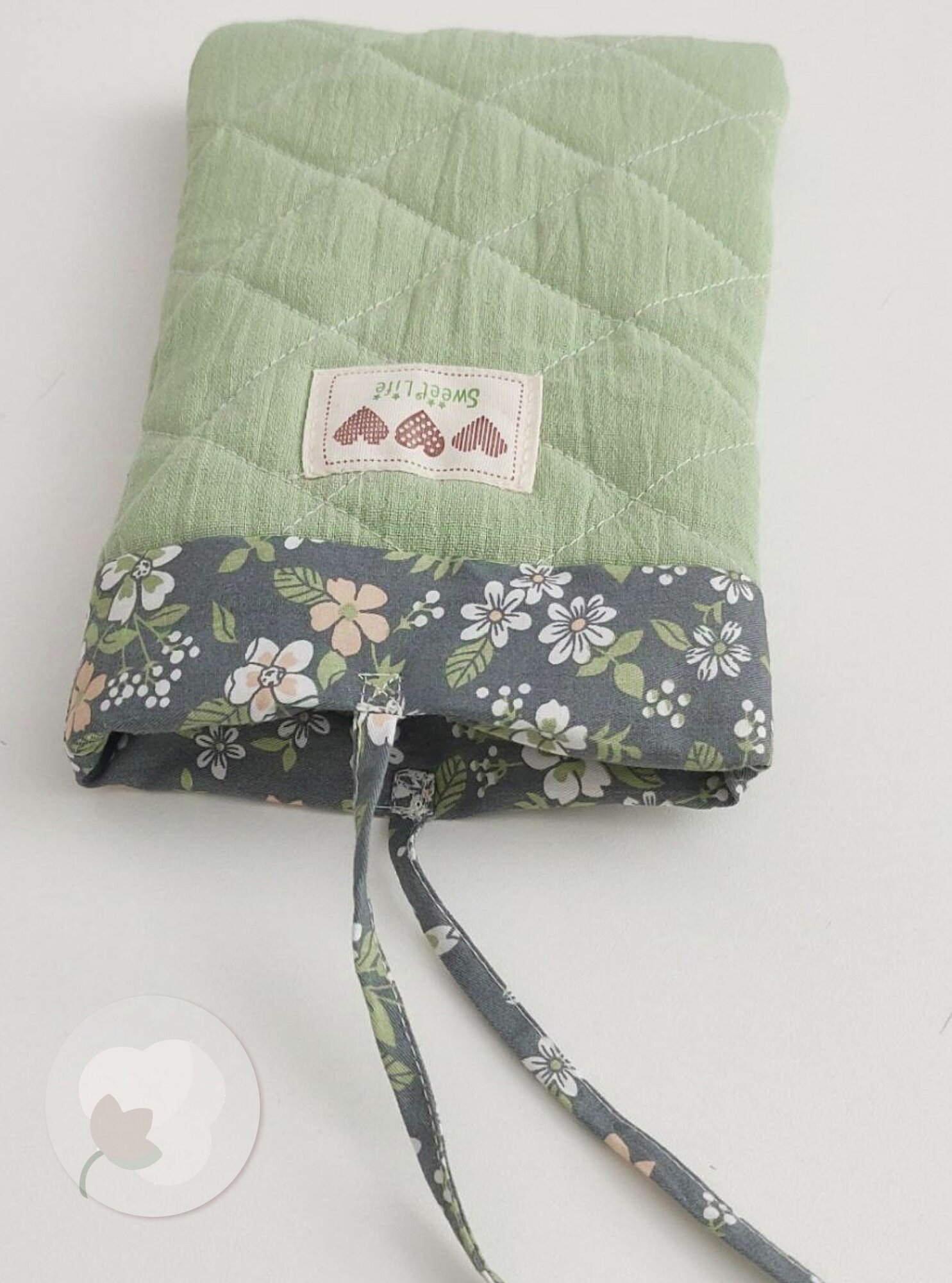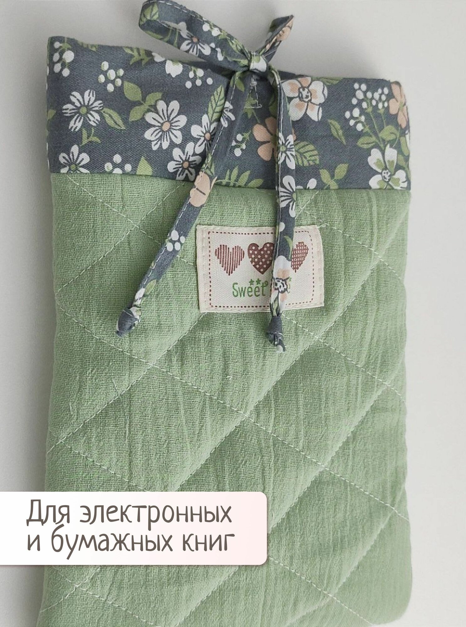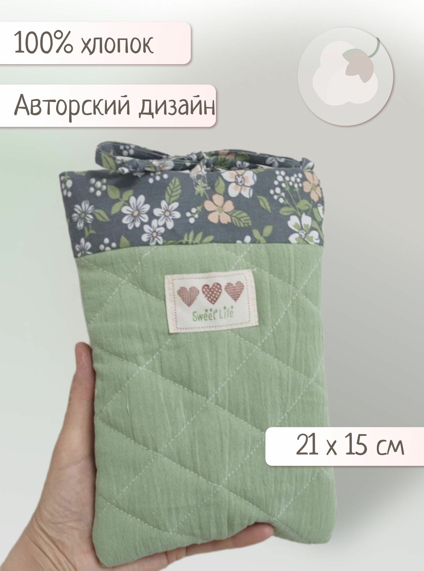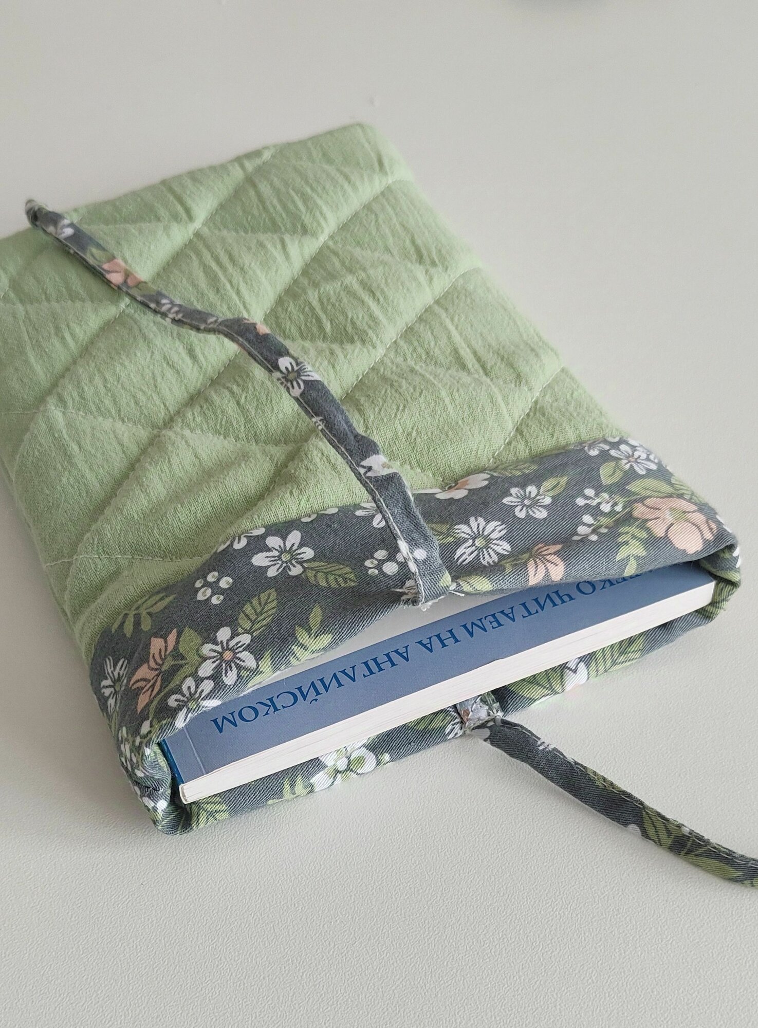 Чехол для книги тканевый мягкий 20х15 см стеганый зеленый с завязками в стиле Pinterest