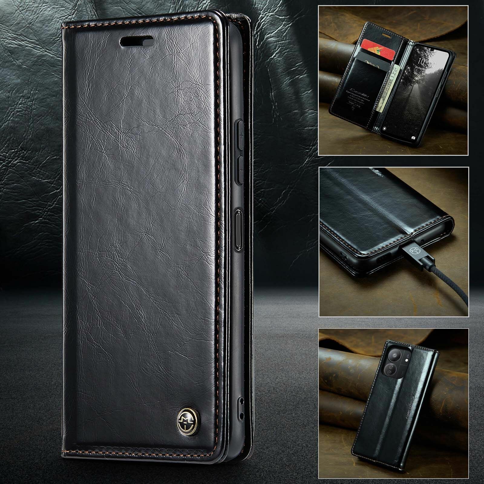 Caseme Кожаный книжка чехол для Xiaomi Redmi 13C/Poco C65/Сяоми Редми 13С/Поко С65 с визитницей из экокожи интересное: