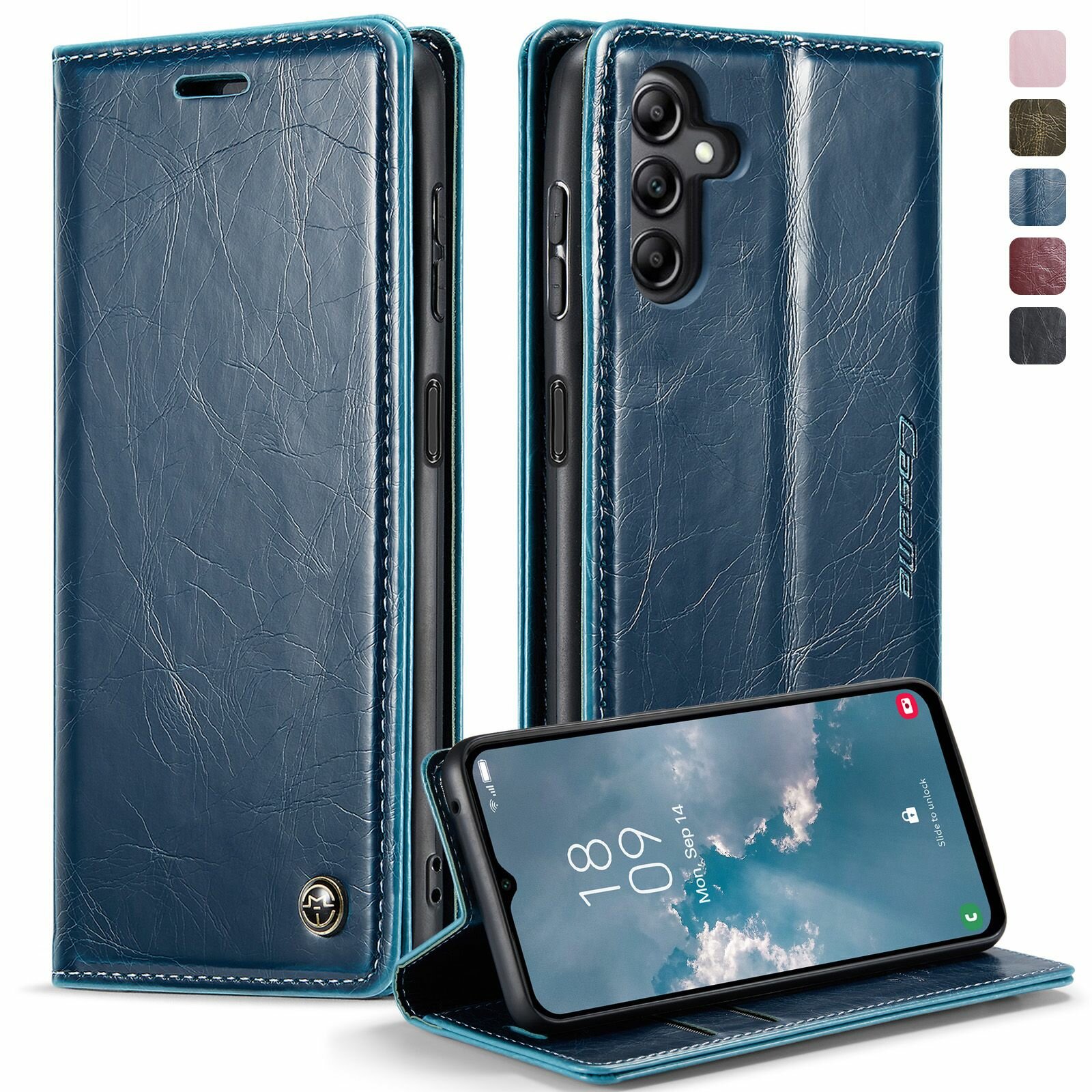 Caseme Кожаный книжка чехол для Samsung Galaxy A14 4G 5G / Самсунг A14 с визитницей из экокожи интересное: