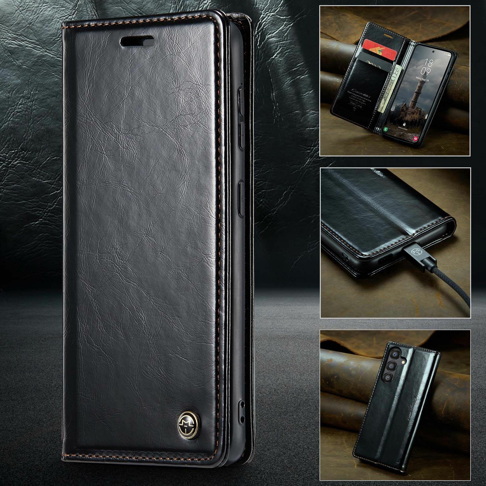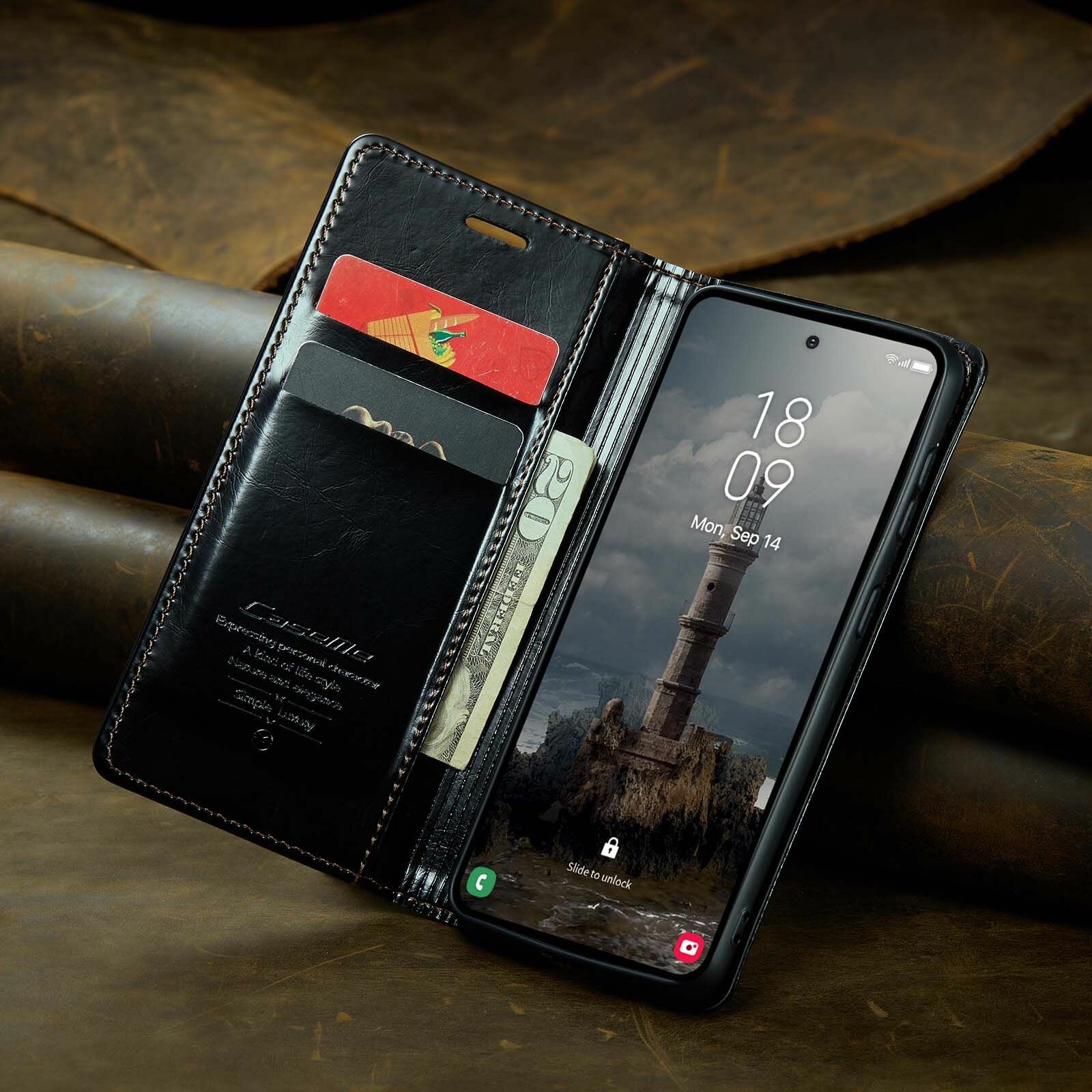 Caseme Кожаный книжка чехол для Samsung Galaxy A55 (5G) / Самсунг Галакси А55 (5Г/5Джи) с визитницей из экокожи интересное: