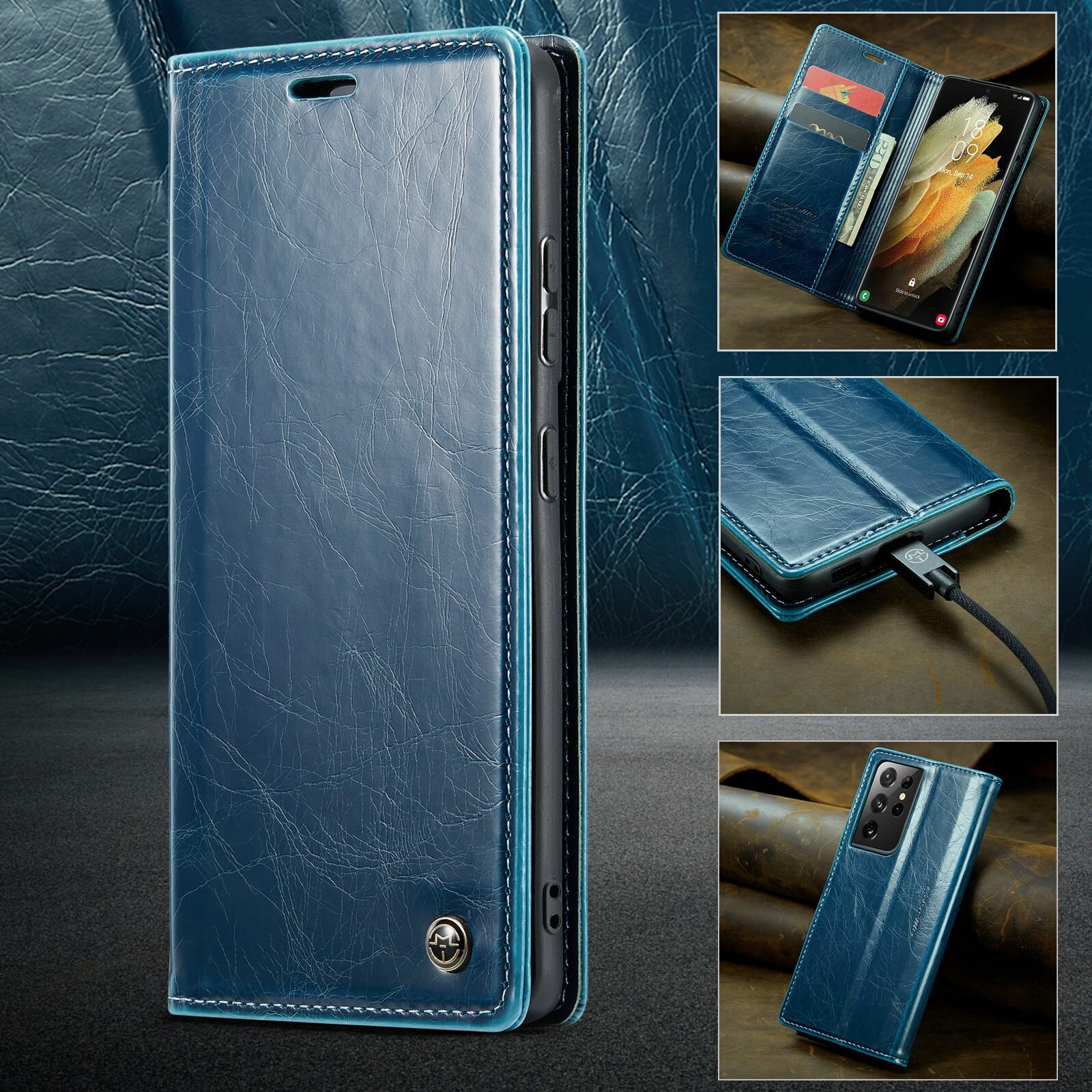 Caseme Кожаный книжка чехол для Samsung Galaxy S21 Ultra 6,8 дюйма с визитницей из экокожи интересное: