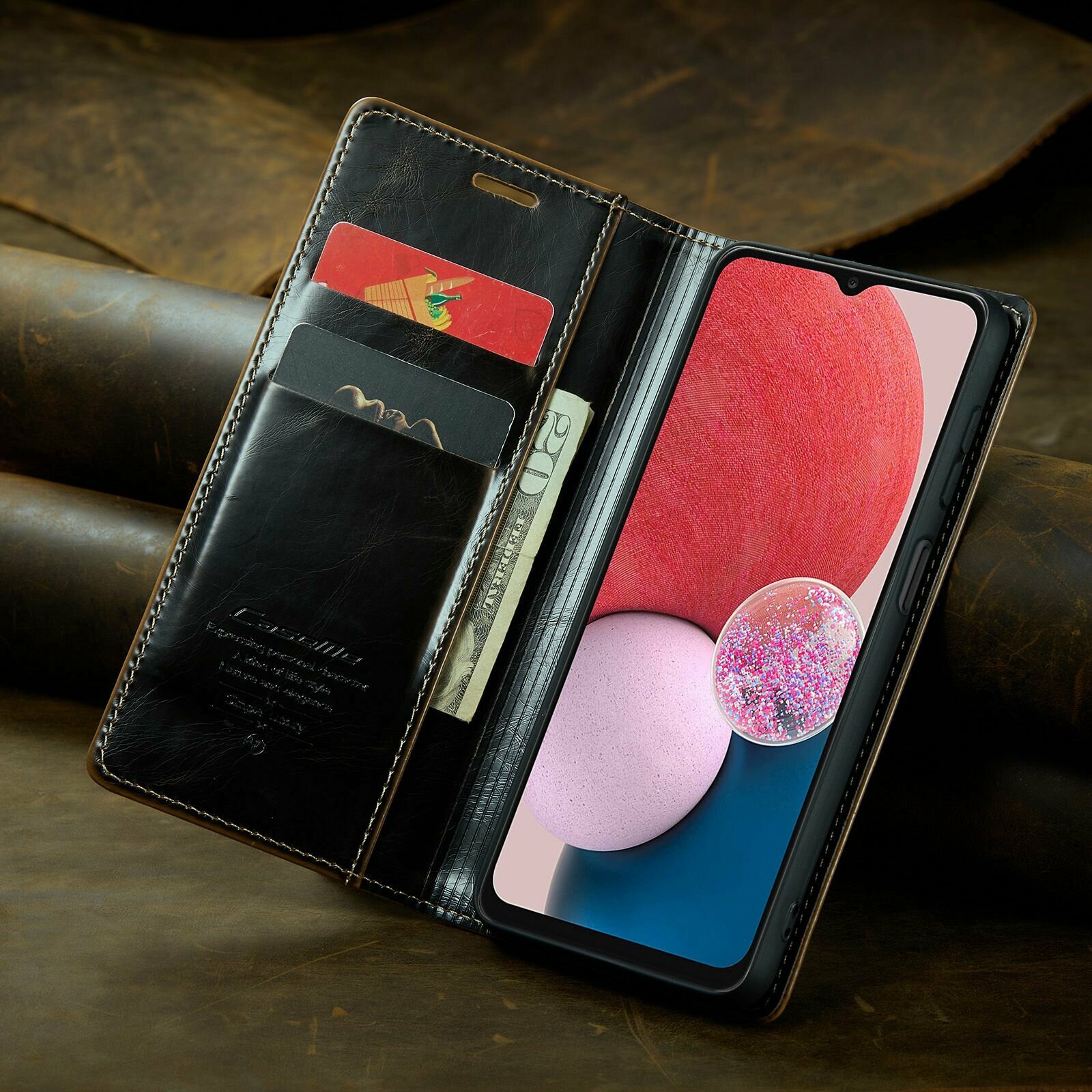 Caseme Кожаный книжка чехол для Samsung Galaxy A13 4G / A13 5G A04S A04 M13 5G с визитницей из экокожи интересное: