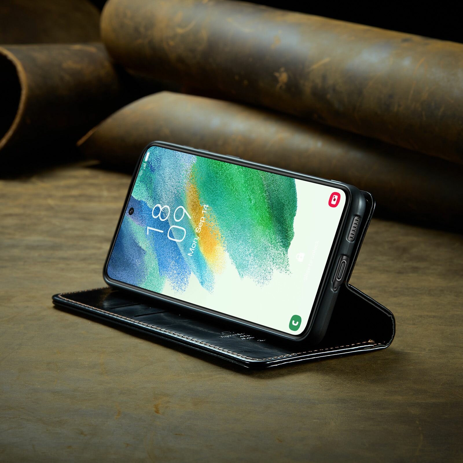 Caseme Кожаный книжка чехол для Samsung Galaxy S21 FE 6,4 дюйма с визитницей из экокожи интересное: