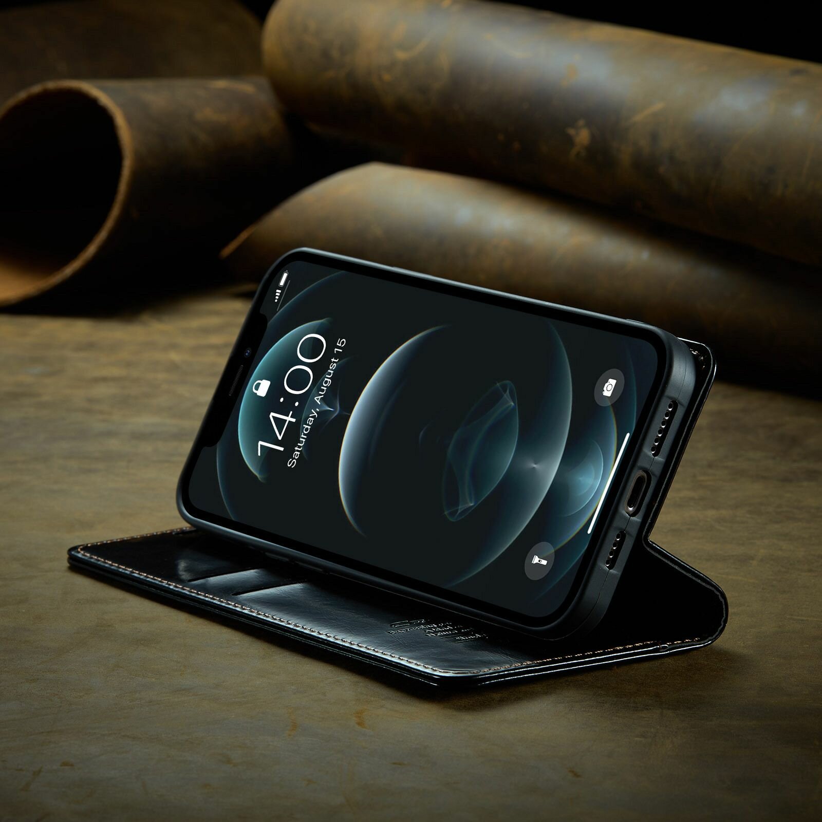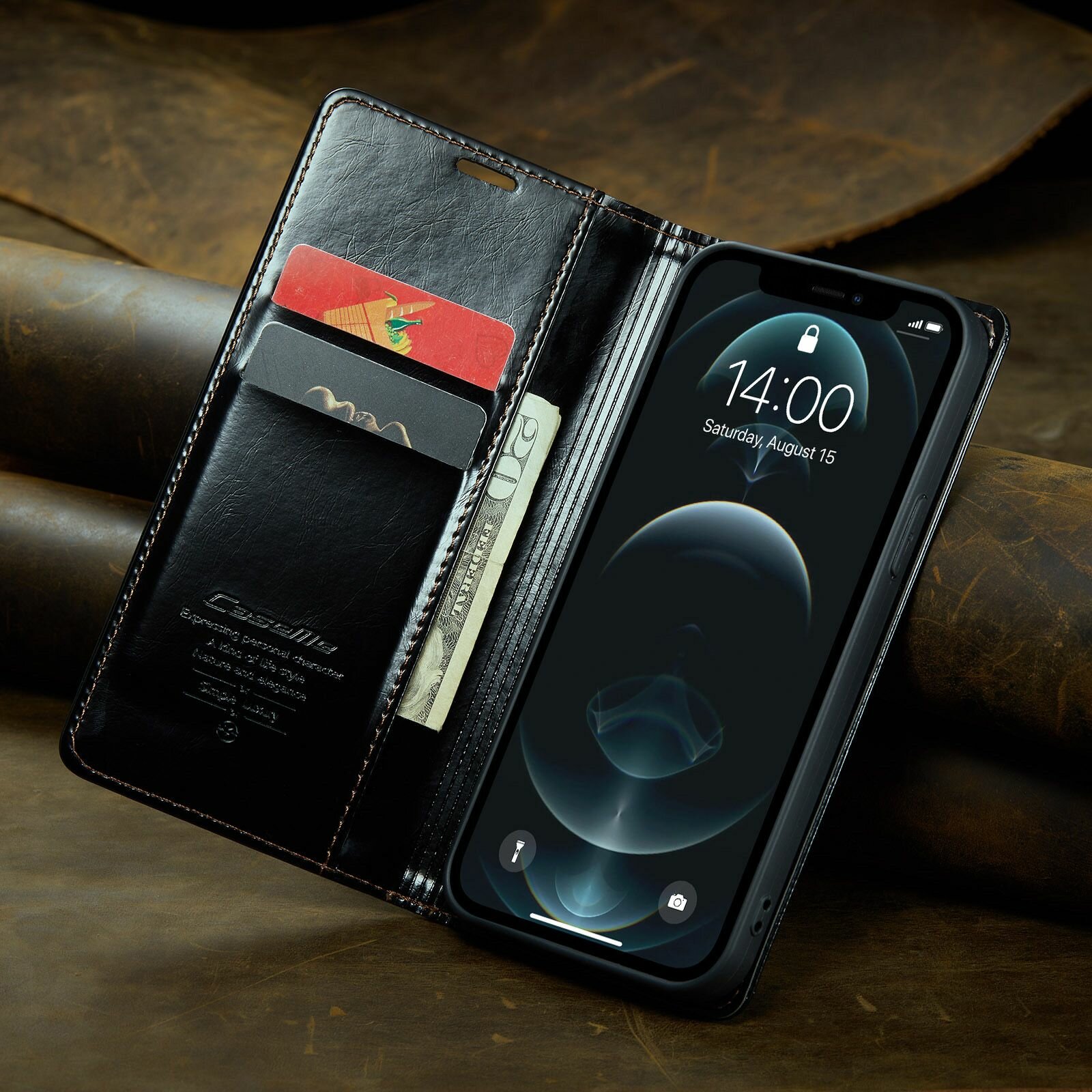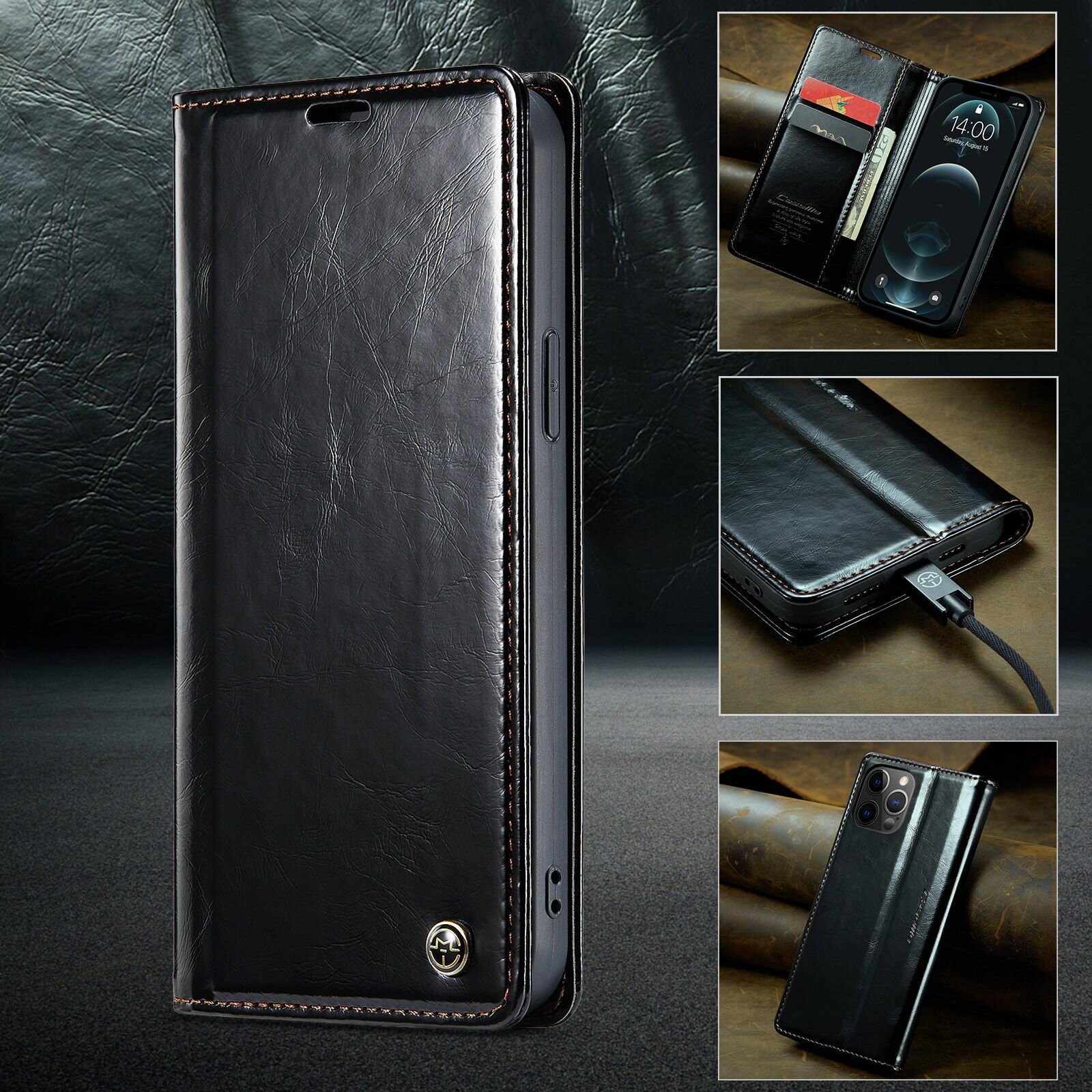 Caseme Кожаный книжка чехол для iPhone 12 Pro Max с визитницей из экокожи интересное:
