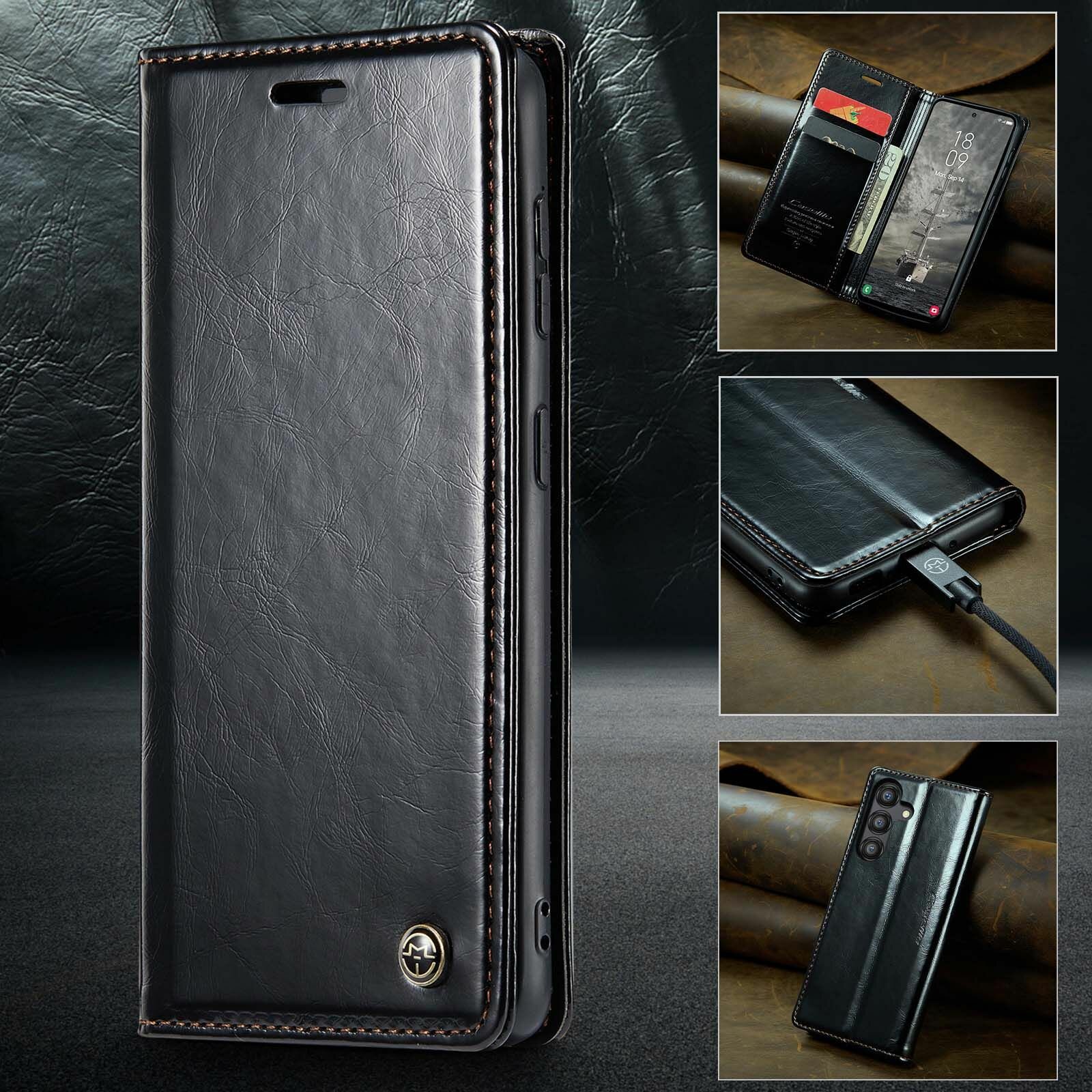 Caseme Кожаный книжка чехол для Samsung Galaxy A35 (5G) / Самсунг Галакси А35 (5Г/5Джи) с визитницей из экокожи интересное: