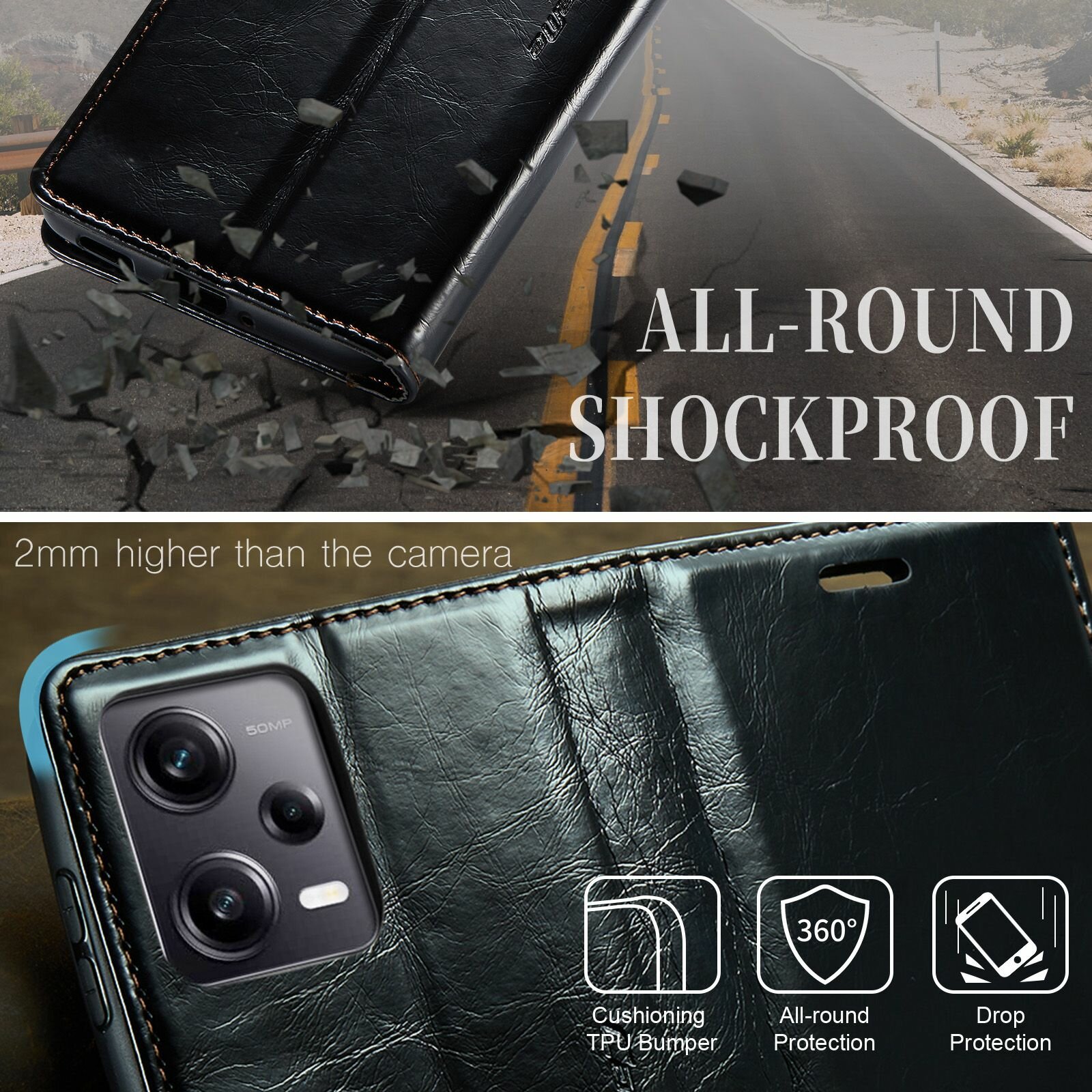 Caseme Кожаный книжка чехол для Xiaomi Redmi Note 12 Pro 5G / Mi POCO X5 Pro 5G /Поко Х5 Про и Редми Нот 12 Про 5G с визитницей из экокожи интересное: