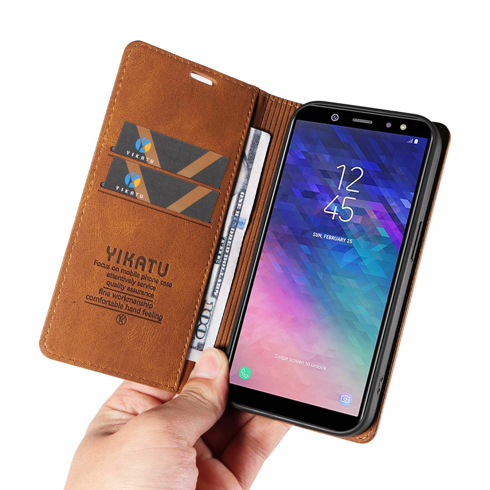 YIKATU Кожаный чехол для Samsung Galaxy A6 (A600)/ Самсунг Галакси А6 А600 визитницей из экокожи книжка интересное: