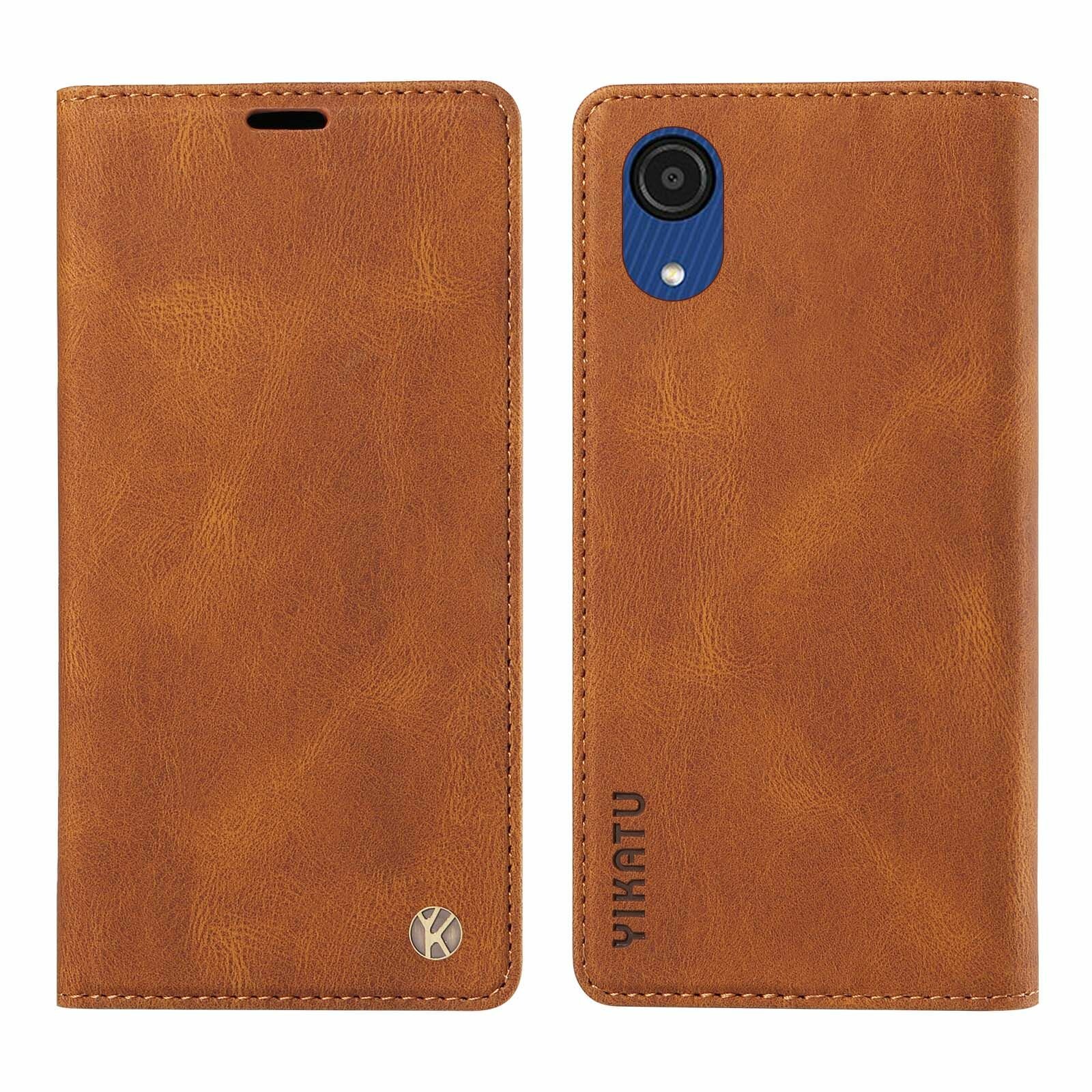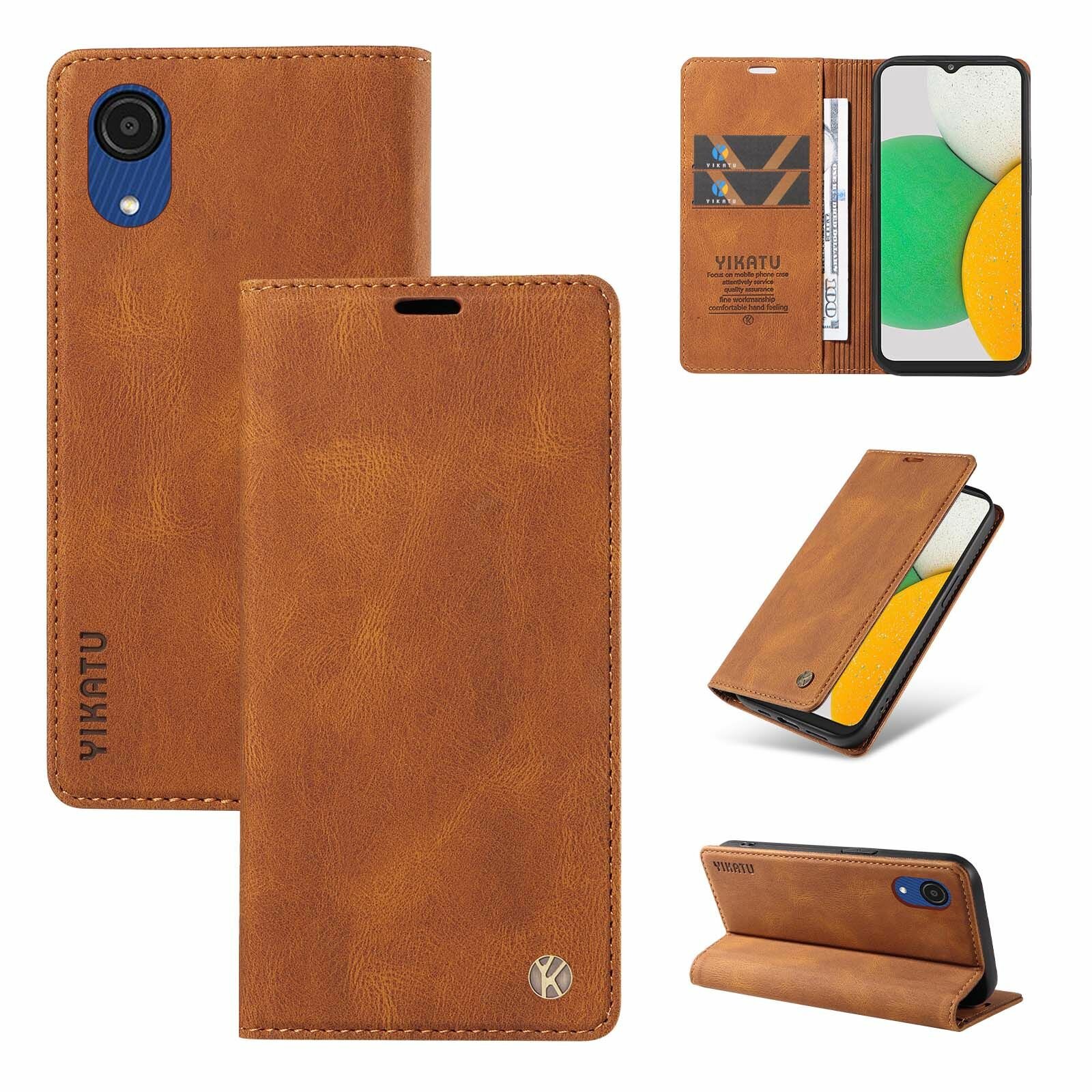 Купить YIKATU Кожаный чехол для Samsung Galaxy A03 Core (A032)/ Самсунг Галакси А03 Кор А032 визитницей из экокожи книжка
