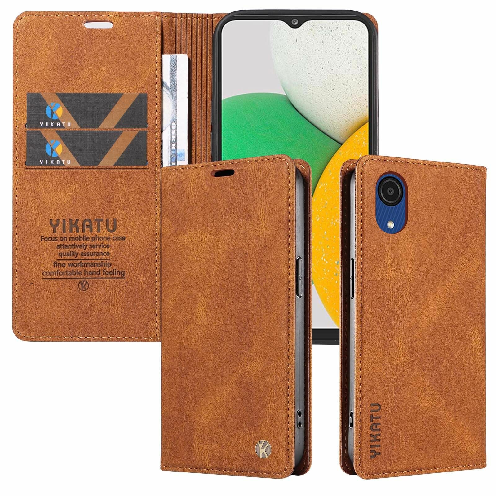 YIKATU Кожаный чехол для Samsung Galaxy A03 Core (A032)/ Самсунг Галакси А03 Кор А032 визитницей из экокожи книжка интересное: