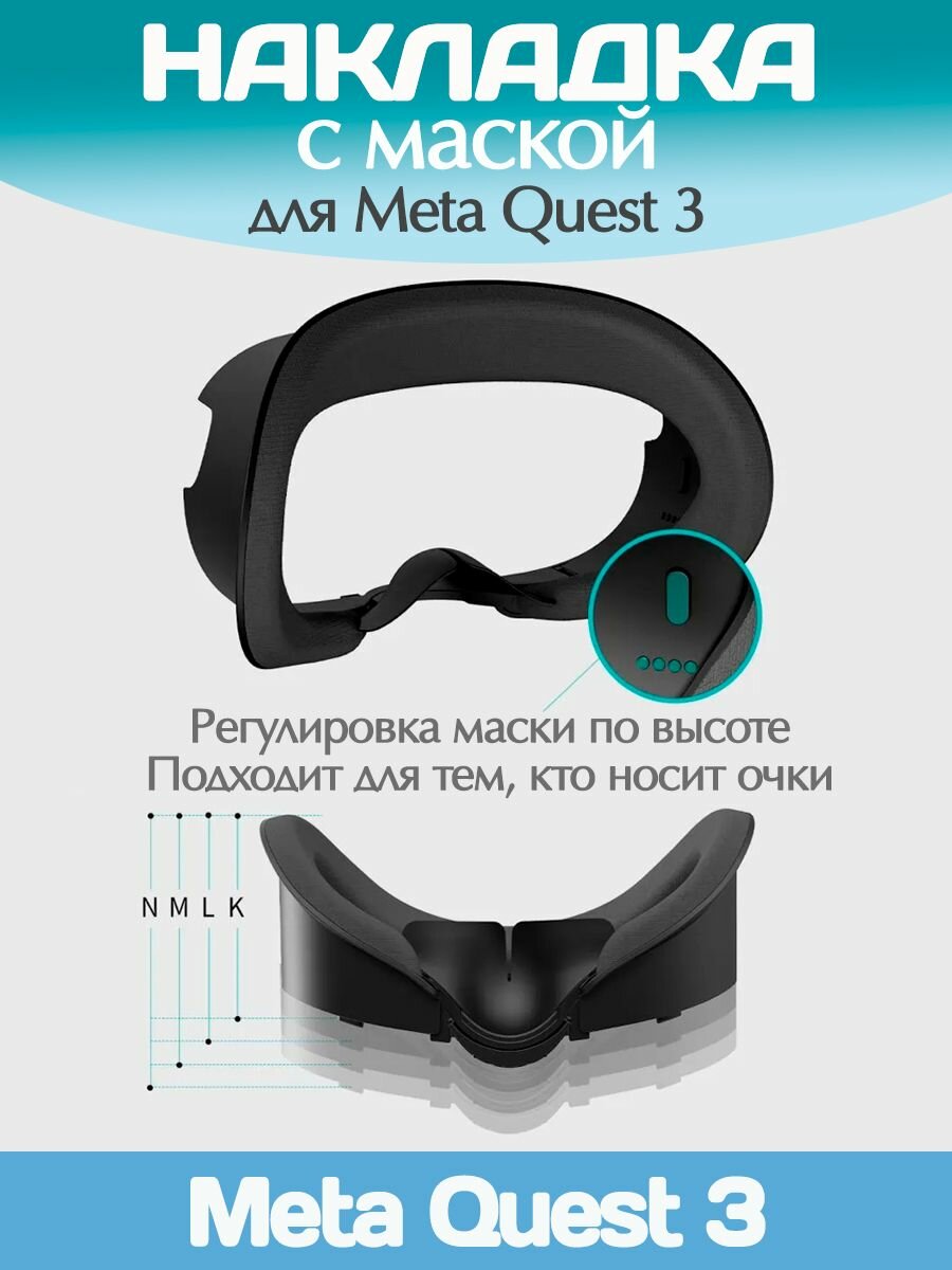 VR Маска для Quest 3 с 2 накладками / Лицевой интерфейс для Квест 3 интересное: