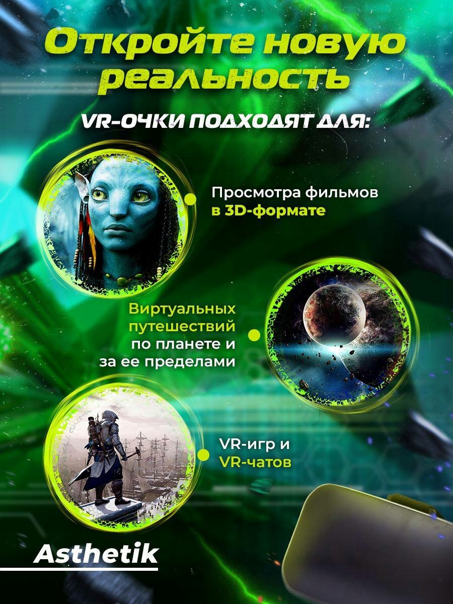 VR-очки Asthetik, для смартфона, джойстик, наушники, кабели type-c и lightning, белые