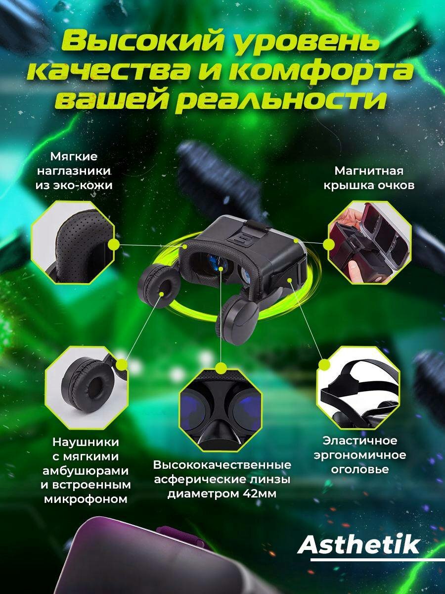 Купить VR-очки виртуальной реальности "Premium", с геймпад, с наушниками, черный/серый