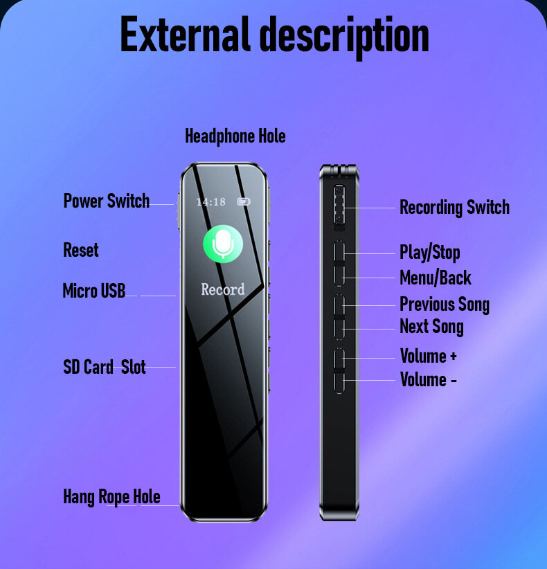 Диктофон Xia Xin A8-1.77, 32ГБ, металлический корпус, цветной экран