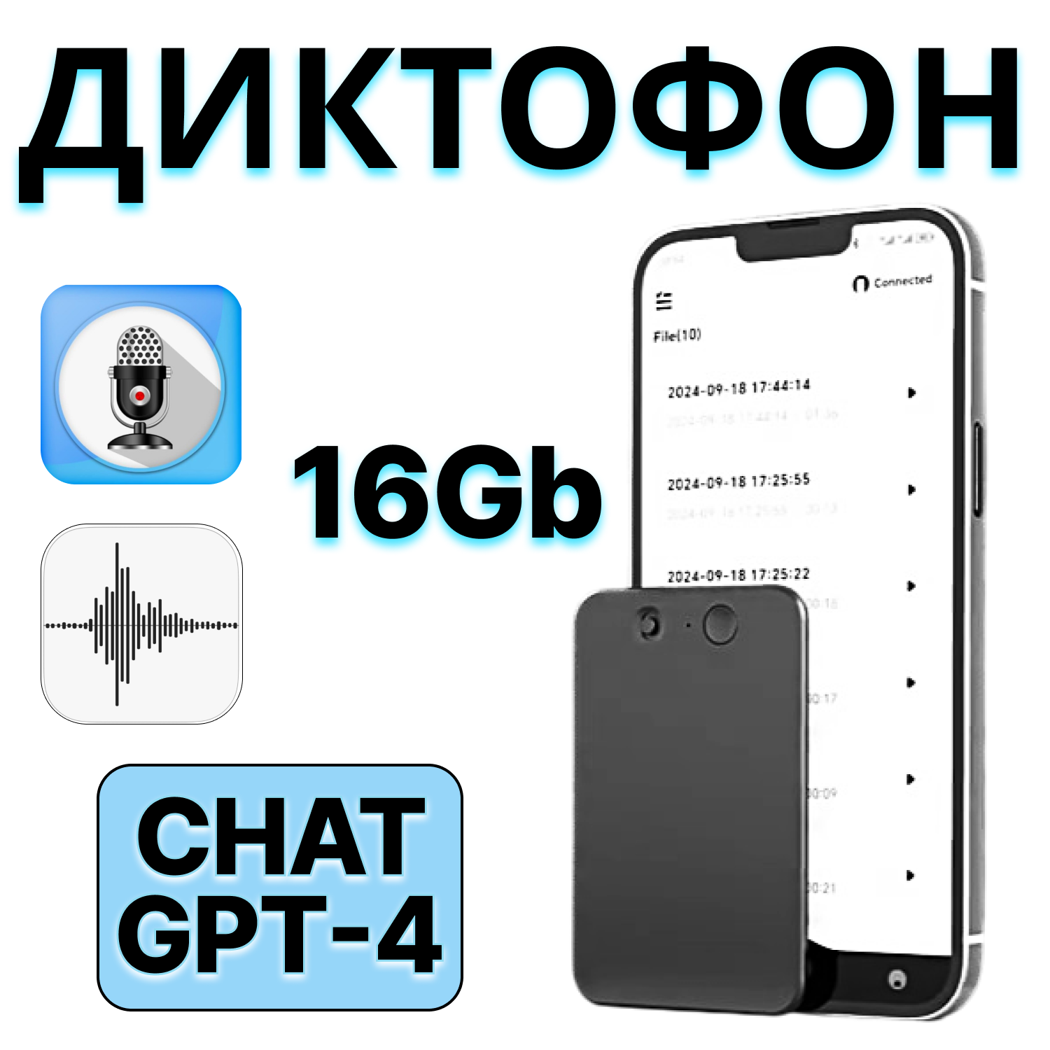 Диктофон "Chat GPT", шумоподавление, запись по таймеру, BLUETOOTH, 16ГБ, черный интересное:
