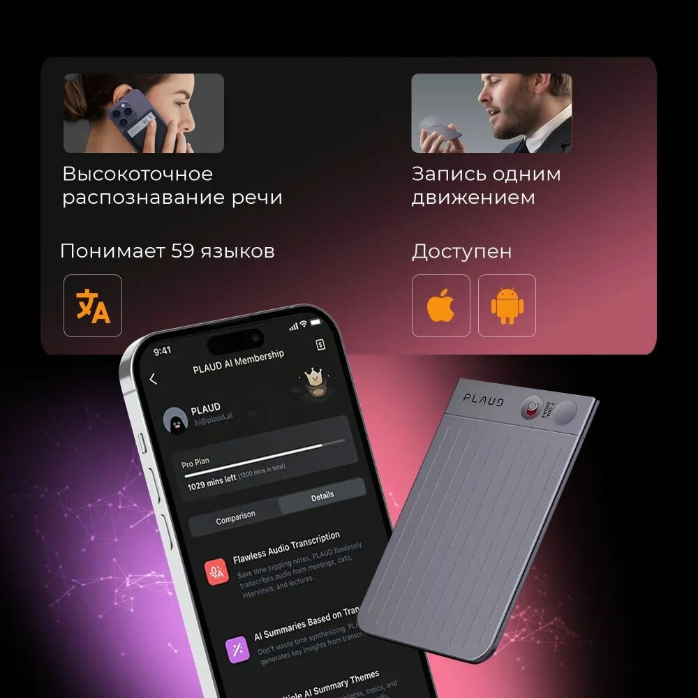 Диктофон PLAUD NOTE, искусственный интеллект Chat GPT, 64GB интересное:
