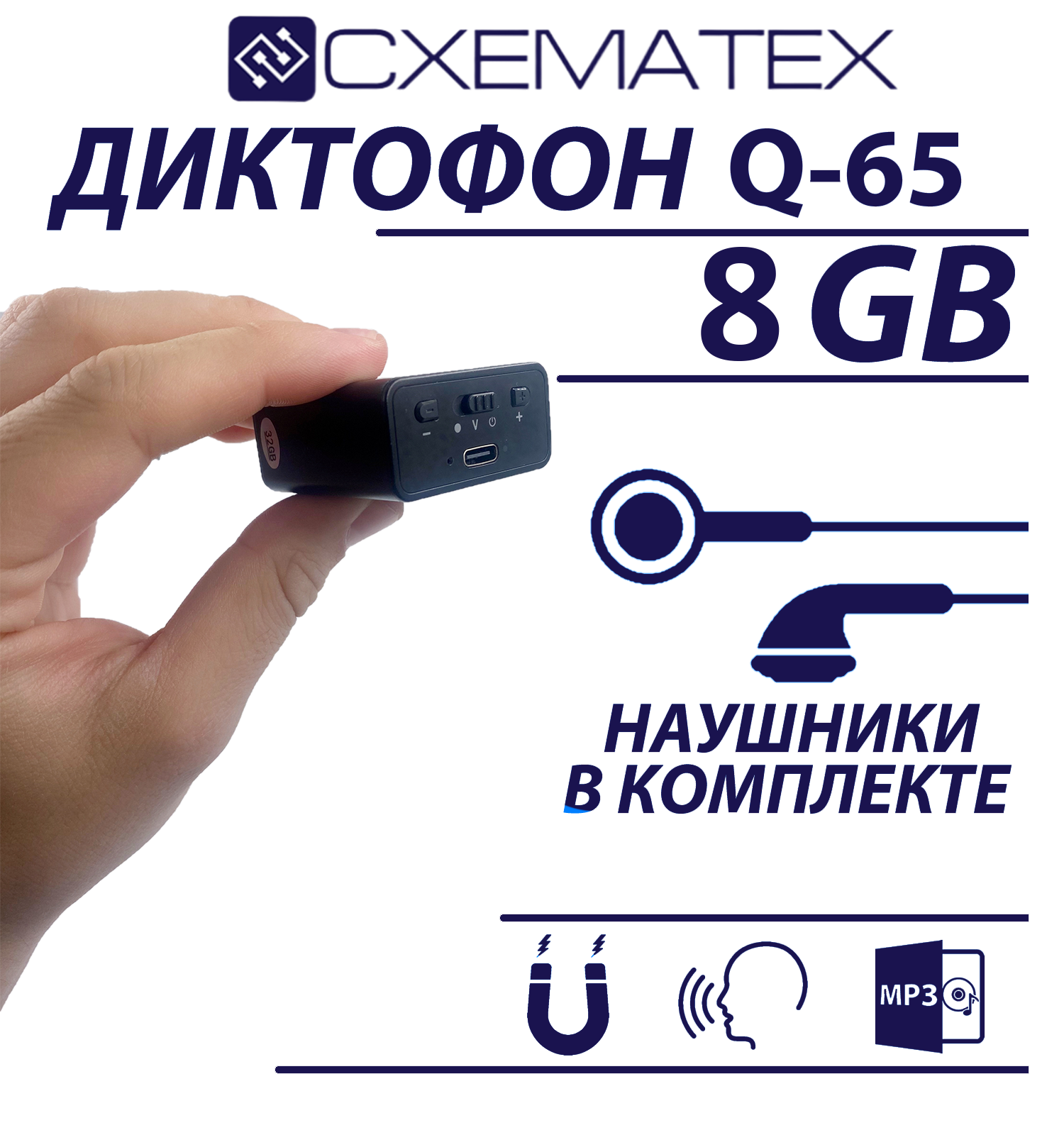 Миниатюрный диктофон Q-65 8гб встроенной памяти, магнитное крепление интересное: