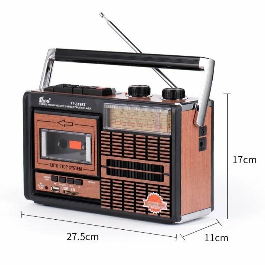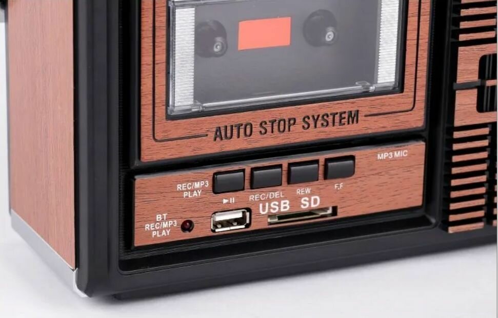 Кассетный магнитофон, 4 - диапазонный FM приемник USB SD карта Bluetooth MP3 транскрипция Bluetooth